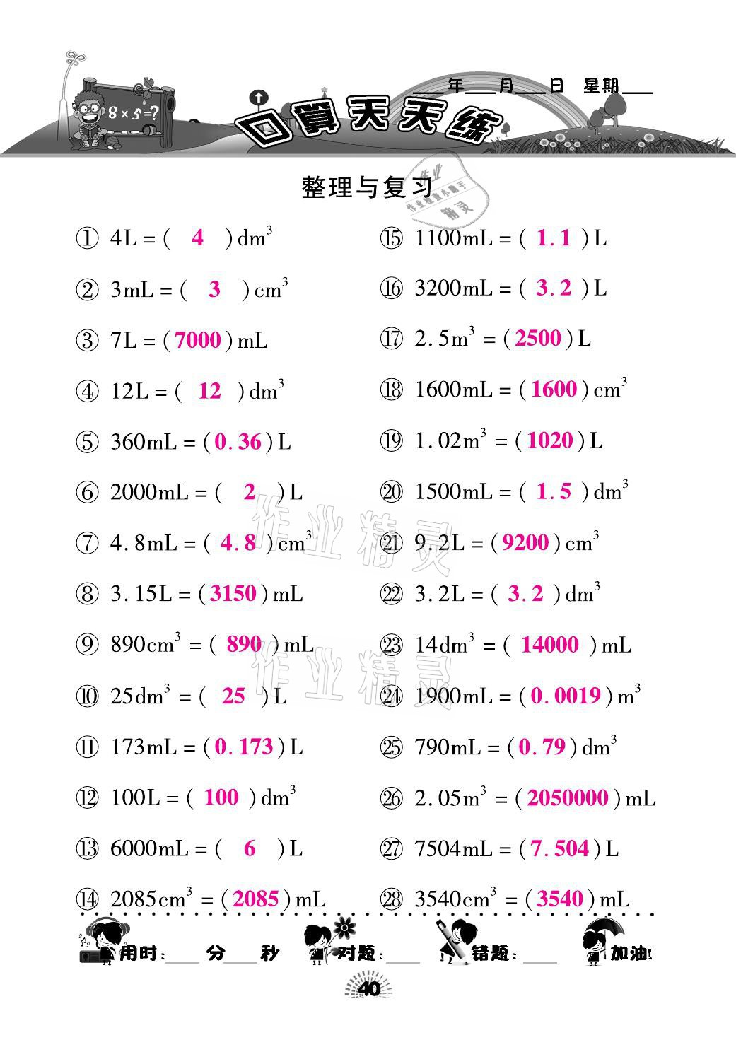注:目前有些书本章节名称可能整理的还不是很完善,但都是按照顺序排列的,请同学们按照顺序仔细查找。练习册 2021年千里马口算天天练五年级数学下册人教版 答案主要是用来给同学们做完题方便对答案用的,请勿直接抄袭。