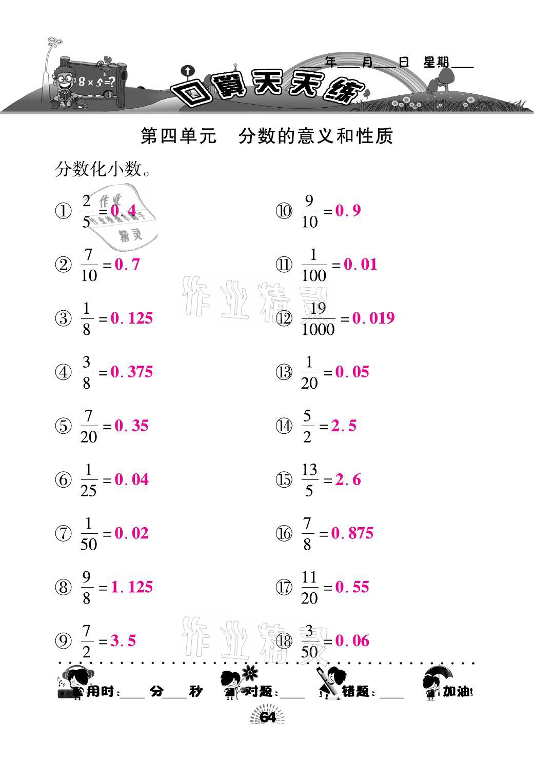 注:目前有些书本章节名称可能整理的还不是很完善,但都是按照顺序排列的,请同学们按照顺序仔细查找。练习册 2021年千里马口算天天练五年级数学下册人教版 答案主要是用来给同学们做完题方便对答案用的,请勿直接抄袭。