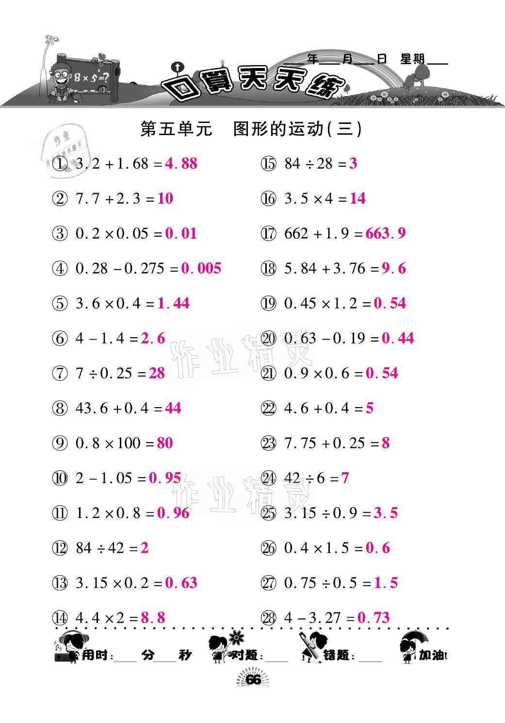 注:目前有些书本章节名称可能整理的还不是很完善,但都是按照顺序排列的,请同学们按照顺序仔细查找。练习册 2021年千里马口算天天练五年级数学下册人教版 答案主要是用来给同学们做完题方便对答案用的,请勿直接抄袭。