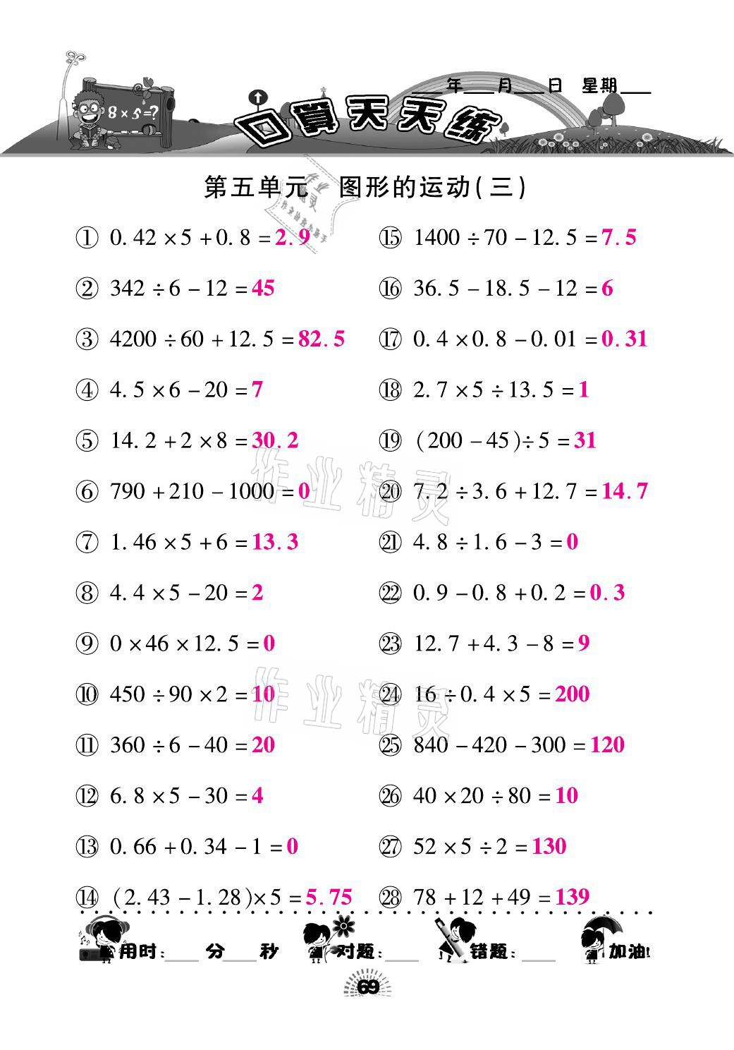 注:目前有些书本章节名称可能整理的还不是很完善,但都是按照顺序排列的,请同学们按照顺序仔细查找。练习册 2021年千里马口算天天练五年级数学下册人教版 答案主要是用来给同学们做完题方便对答案用的,请勿直接抄袭。