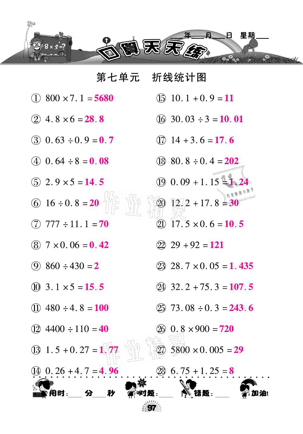 注:目前有些书本章节名称可能整理的还不是很完善,但都是按照顺序排列的,请同学们按照顺序仔细查找。练习册 2021年千里马口算天天练五年级数学下册人教版 答案主要是用来给同学们做完题方便对答案用的,请勿直接抄袭。