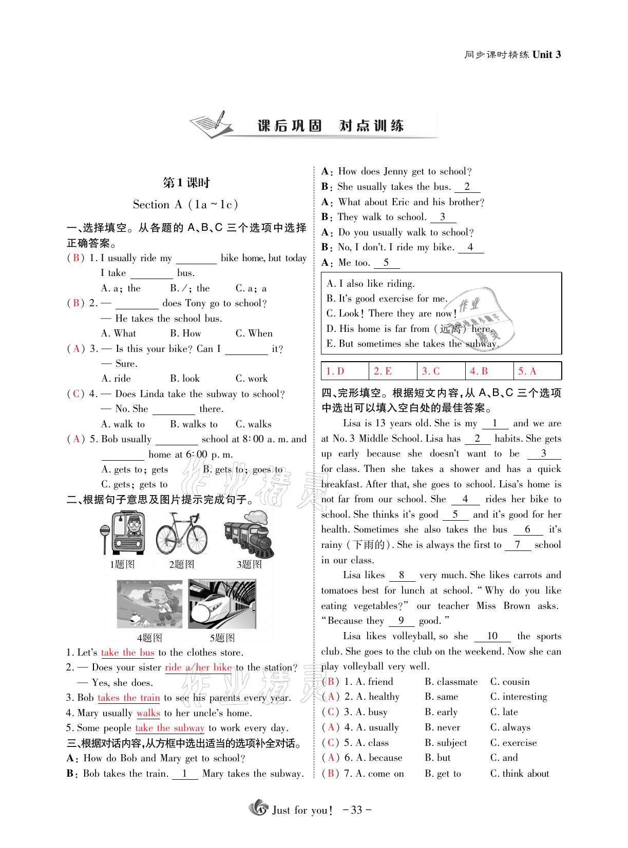 注:目前有些书本章节名称可能整理的还不是很完善,但都是按照顺序排列的,请同学们按照顺序仔细查找。练习册 2021年优课堂给力A加七年级英语下册人教版 答案主要是用来给同学们做完题方便对答案用的,请勿直接抄袭。
