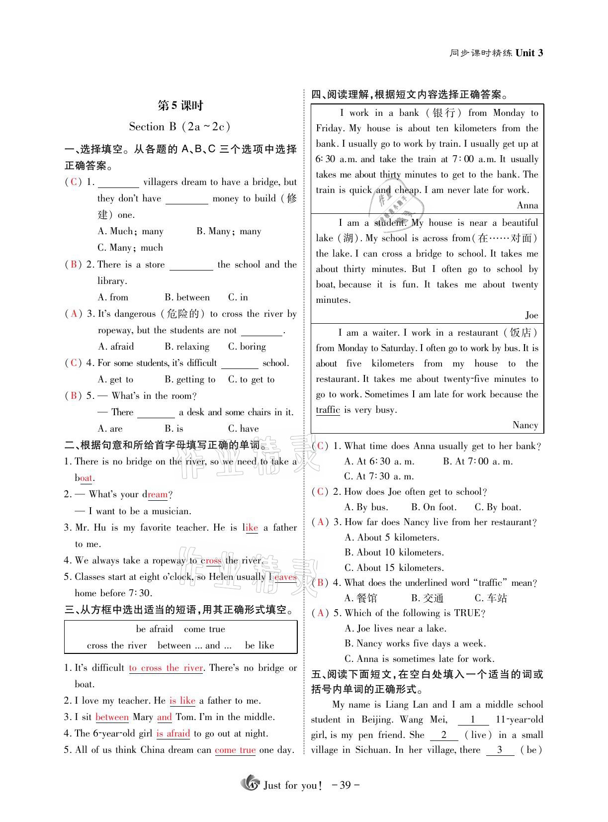 注:目前有些书本章节名称可能整理的还不是很完善,但都是按照顺序排列的,请同学们按照顺序仔细查找。练习册 2021年优课堂给力A加七年级英语下册人教版 答案主要是用来给同学们做完题方便对答案用的,请勿直接抄袭。