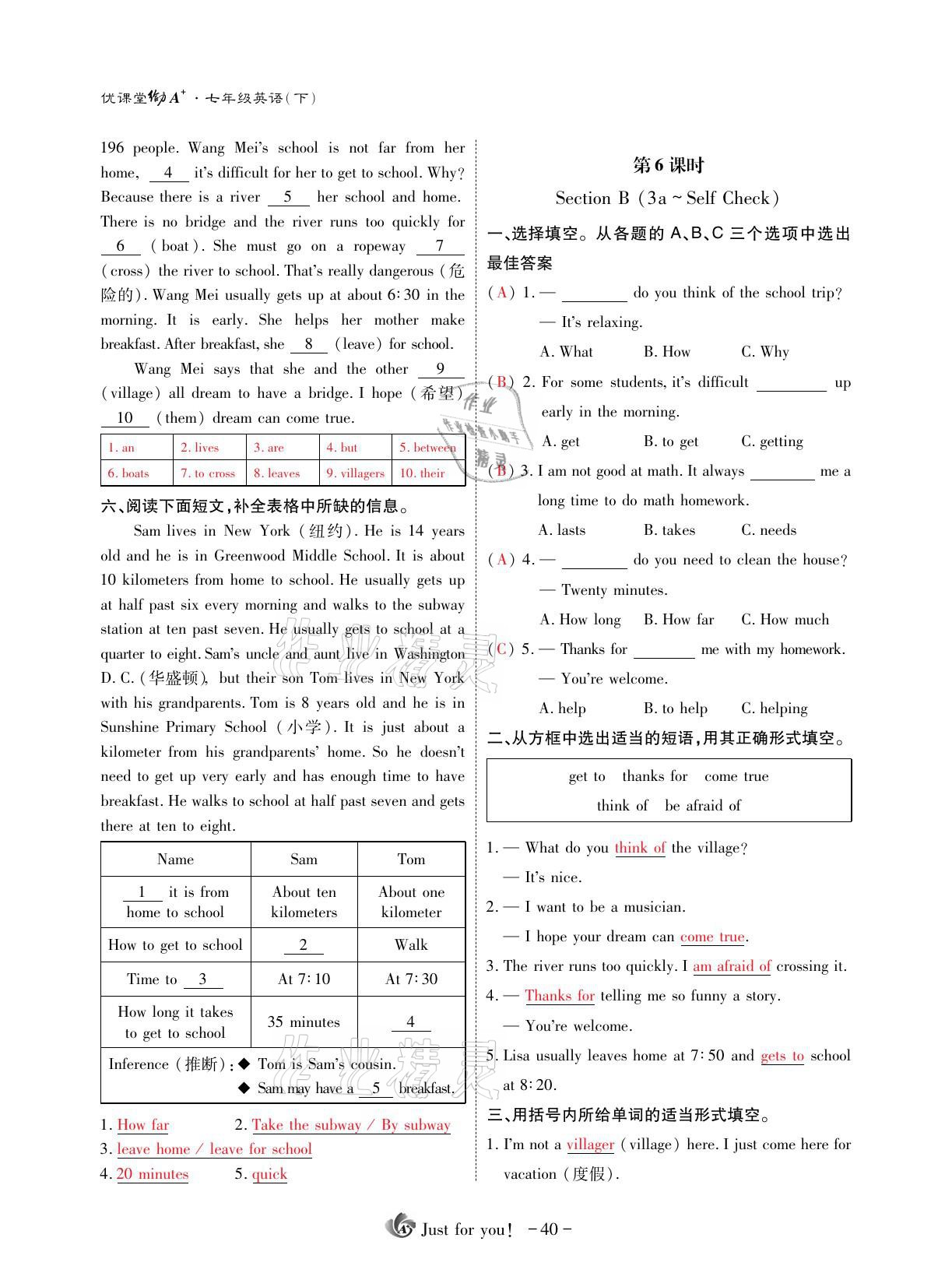 注:目前有些书本章节名称可能整理的还不是很完善,但都是按照顺序排列的,请同学们按照顺序仔细查找。练习册 2021年优课堂给力A加七年级英语下册人教版 答案主要是用来给同学们做完题方便对答案用的,请勿直接抄袭。