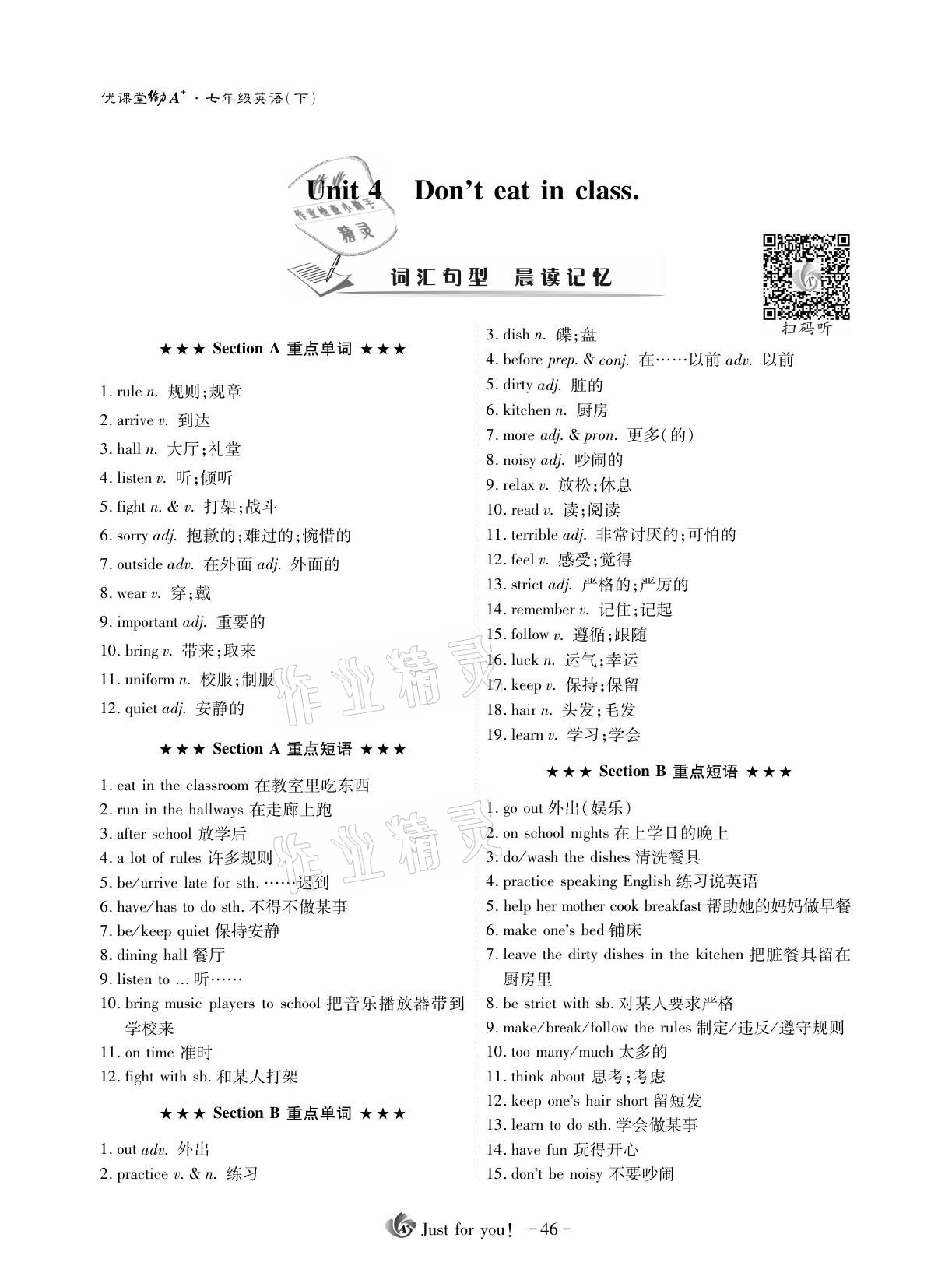 注:目前有些书本章节名称可能整理的还不是很完善,但都是按照顺序排列的,请同学们按照顺序仔细查找。练习册 2021年优课堂给力A加七年级英语下册人教版 答案主要是用来给同学们做完题方便对答案用的,请勿直接抄袭。