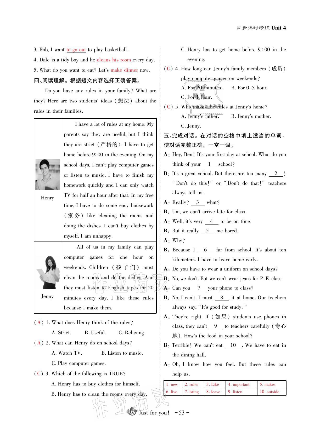 注:目前有些书本章节名称可能整理的还不是很完善,但都是按照顺序排列的,请同学们按照顺序仔细查找。练习册 2021年优课堂给力A加七年级英语下册人教版 答案主要是用来给同学们做完题方便对答案用的,请勿直接抄袭。