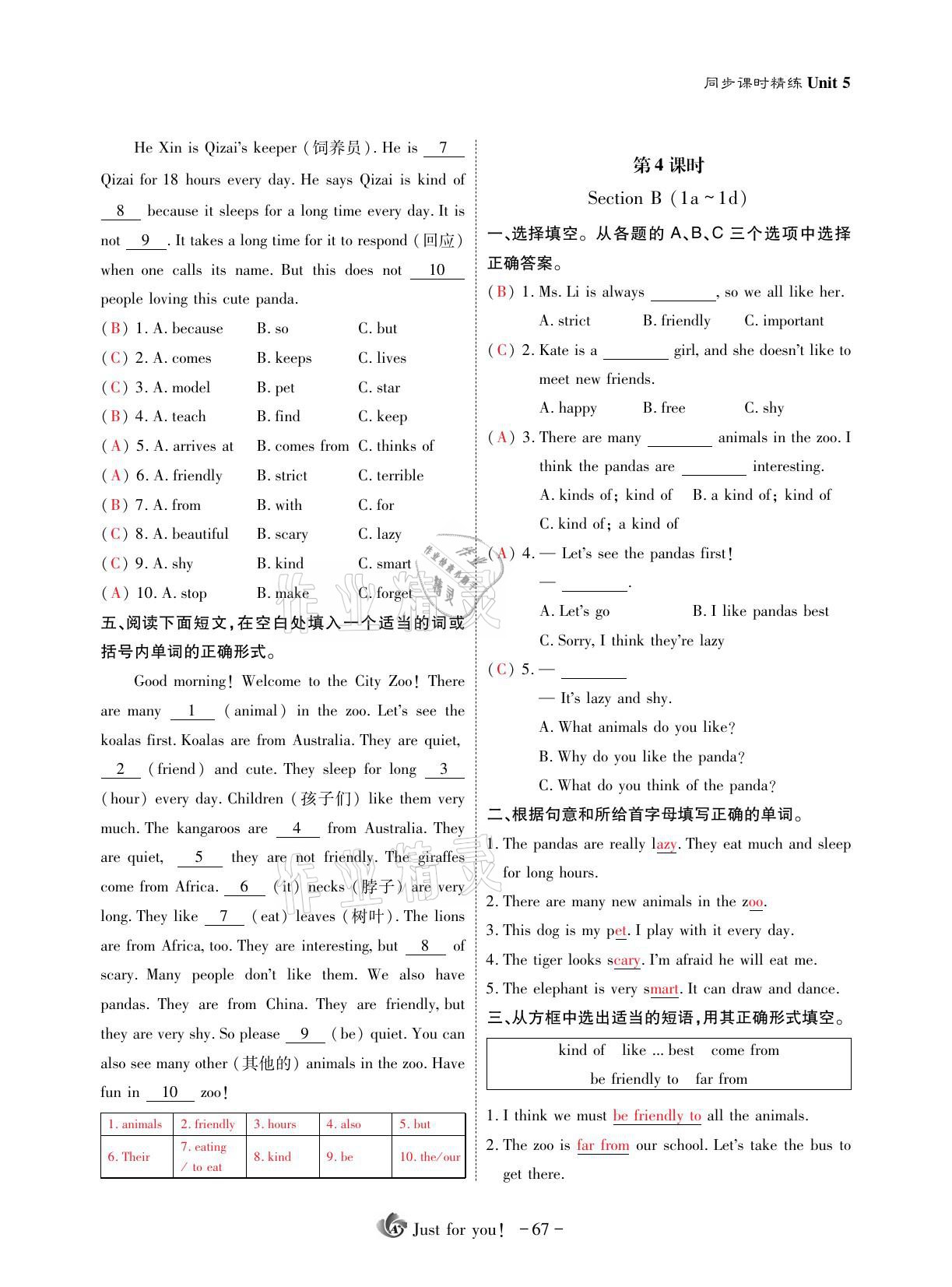 注:目前有些书本章节名称可能整理的还不是很完善,但都是按照顺序排列的,请同学们按照顺序仔细查找。练习册 2021年优课堂给力A加七年级英语下册人教版 答案主要是用来给同学们做完题方便对答案用的,请勿直接抄袭。