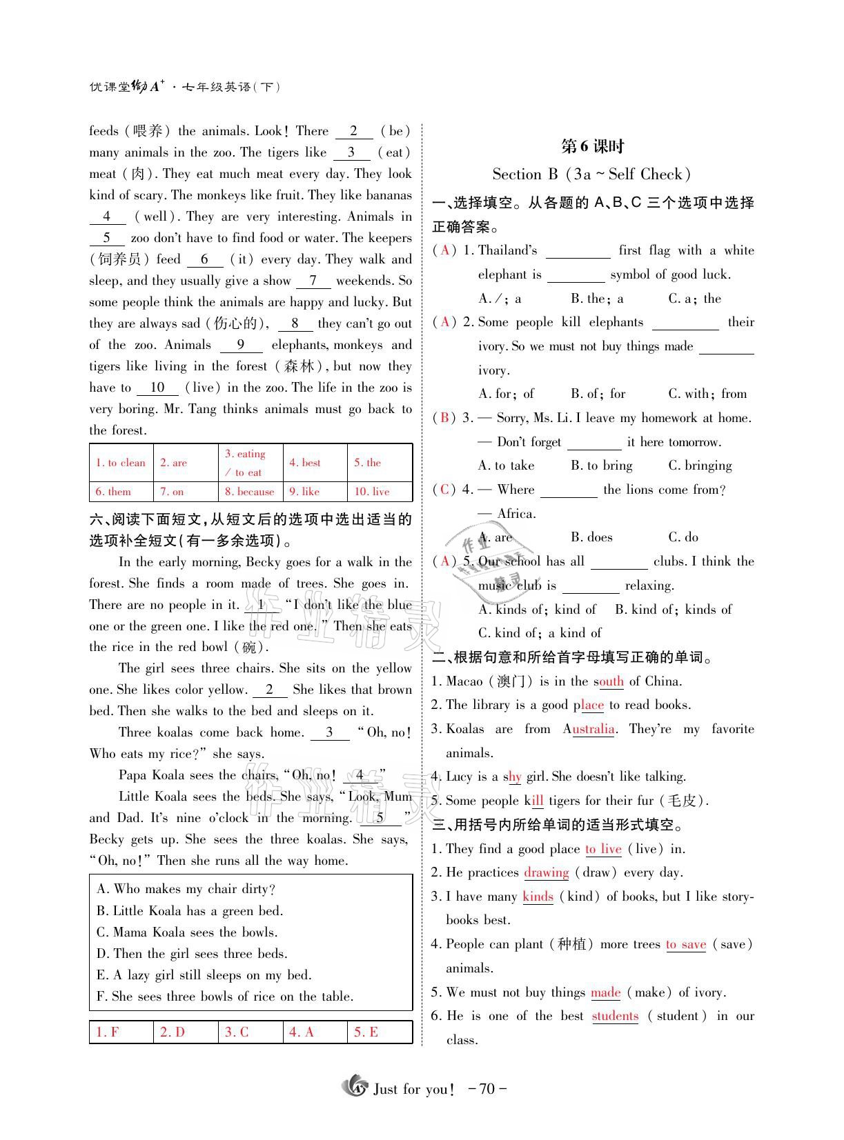 注:目前有些书本章节名称可能整理的还不是很完善,但都是按照顺序排列的,请同学们按照顺序仔细查找。练习册 2021年优课堂给力A加七年级英语下册人教版 答案主要是用来给同学们做完题方便对答案用的,请勿直接抄袭。