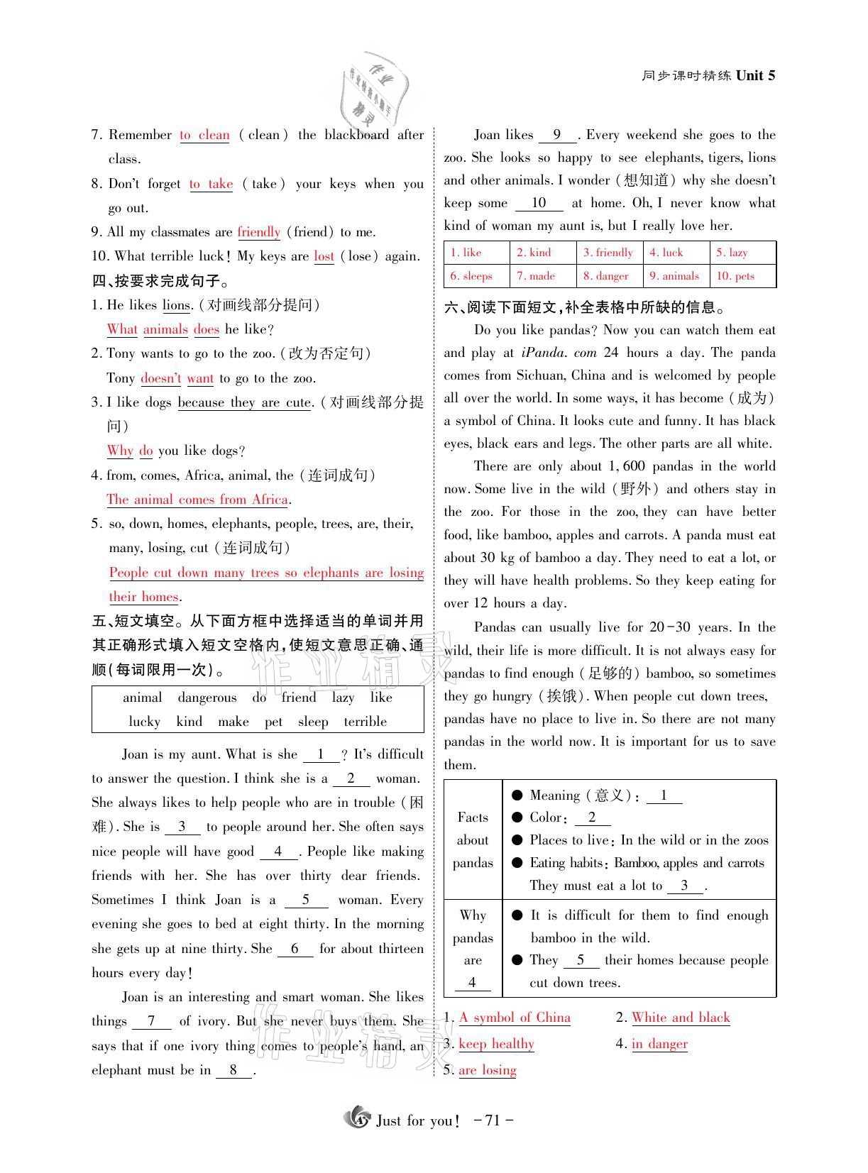 注:目前有些书本章节名称可能整理的还不是很完善,但都是按照顺序排列的,请同学们按照顺序仔细查找。练习册 2021年优课堂给力A加七年级英语下册人教版 答案主要是用来给同学们做完题方便对答案用的,请勿直接抄袭。