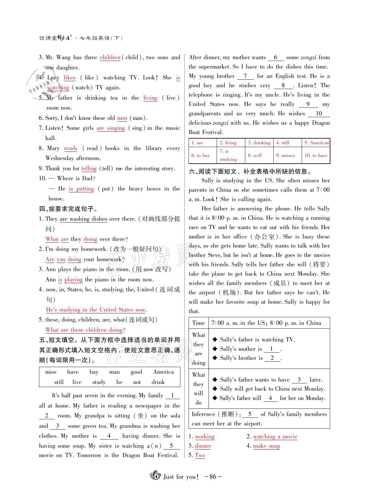 注:目前有些书本章节名称可能整理的还不是很完善,但都是按照顺序排列的,请同学们按照顺序仔细查找。练习册 2021年优课堂给力A加七年级英语下册人教版 答案主要是用来给同学们做完题方便对答案用的,请勿直接抄袭。
