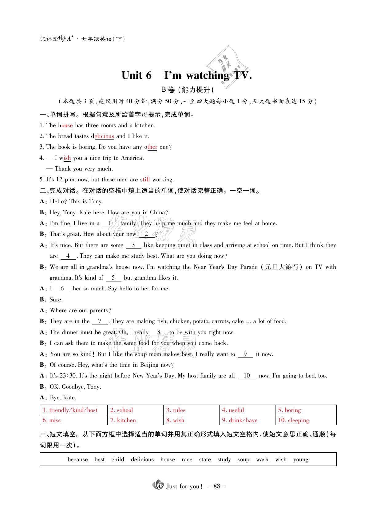 注:目前有些书本章节名称可能整理的还不是很完善,但都是按照顺序排列的,请同学们按照顺序仔细查找。练习册 2021年优课堂给力A加七年级英语下册人教版 答案主要是用来给同学们做完题方便对答案用的,请勿直接抄袭。