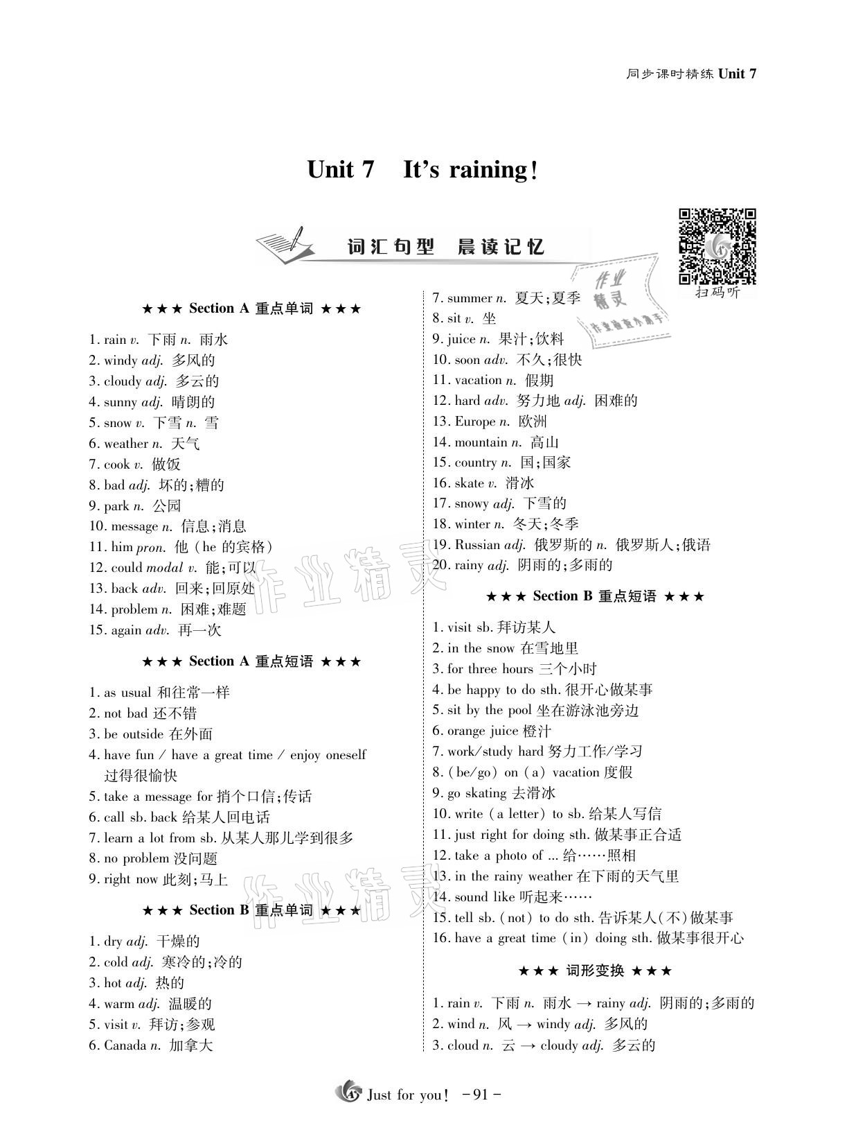 注:目前有些书本章节名称可能整理的还不是很完善,但都是按照顺序排列的,请同学们按照顺序仔细查找。练习册 2021年优课堂给力A加七年级英语下册人教版 答案主要是用来给同学们做完题方便对答案用的,请勿直接抄袭。