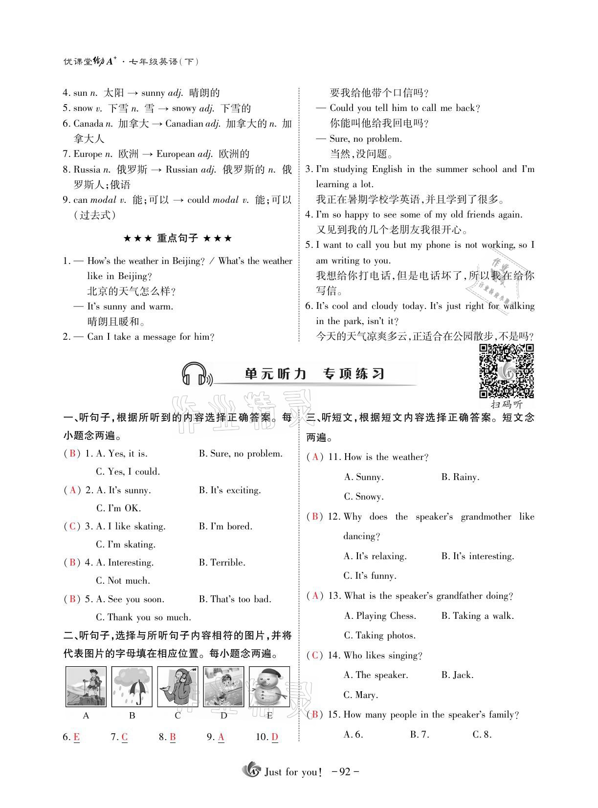 注:目前有些书本章节名称可能整理的还不是很完善,但都是按照顺序排列的,请同学们按照顺序仔细查找。练习册 2021年优课堂给力A加七年级英语下册人教版 答案主要是用来给同学们做完题方便对答案用的,请勿直接抄袭。