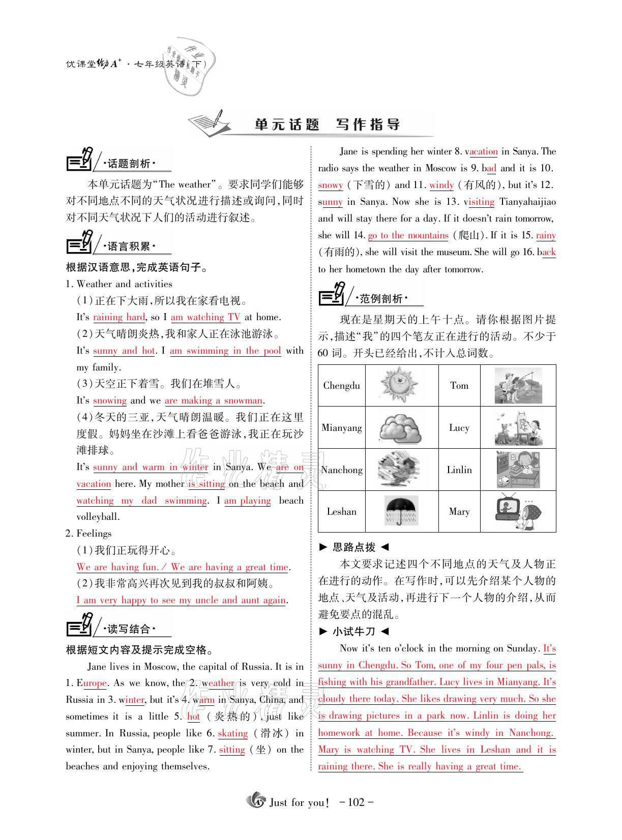 注:目前有些书本章节名称可能整理的还不是很完善,但都是按照顺序排列的,请同学们按照顺序仔细查找。练习册 2021年优课堂给力A加七年级英语下册人教版 答案主要是用来给同学们做完题方便对答案用的,请勿直接抄袭。
