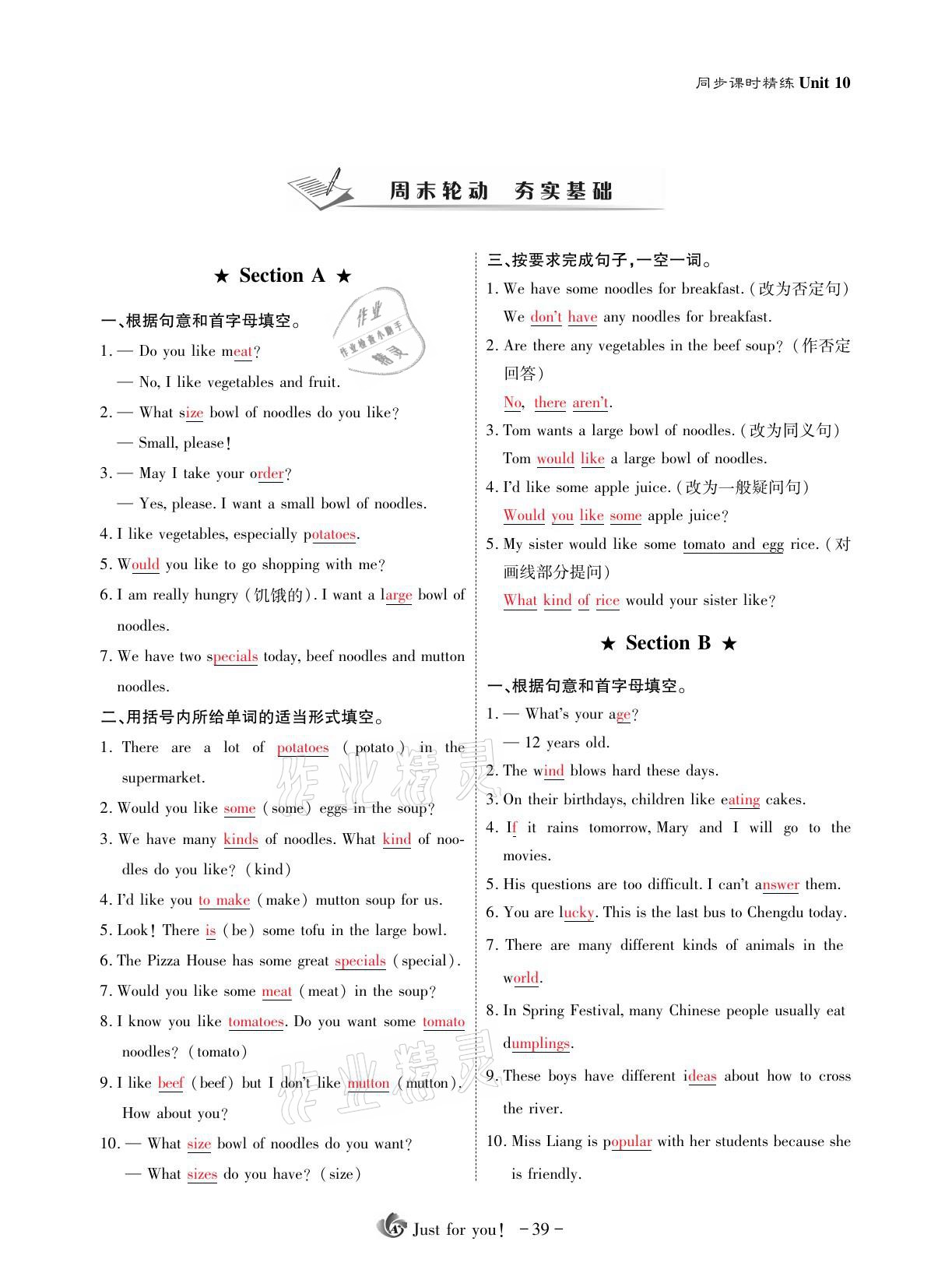 注:目前有些书本章节名称可能整理的还不是很完善,但都是按照顺序排列的,请同学们按照顺序仔细查找。练习册 2021年优课堂给力A加七年级英语下册人教版 答案主要是用来给同学们做完题方便对答案用的,请勿直接抄袭。
