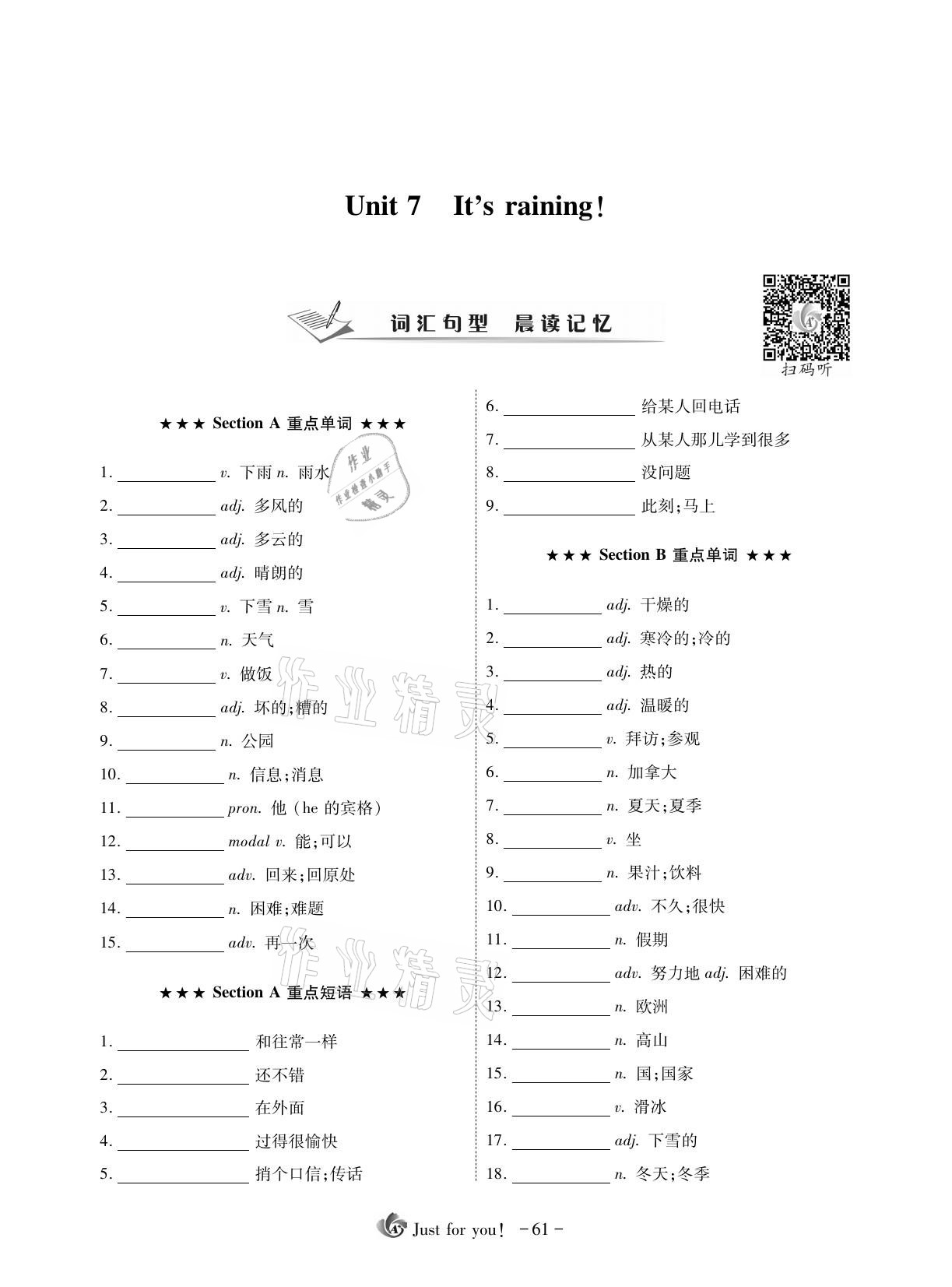 注:目前有些书本章节名称可能整理的还不是很完善,但都是按照顺序排列的,请同学们按照顺序仔细查找。练习册 2021年优课堂给力A加七年级英语下册人教版 答案主要是用来给同学们做完题方便对答案用的,请勿直接抄袭。