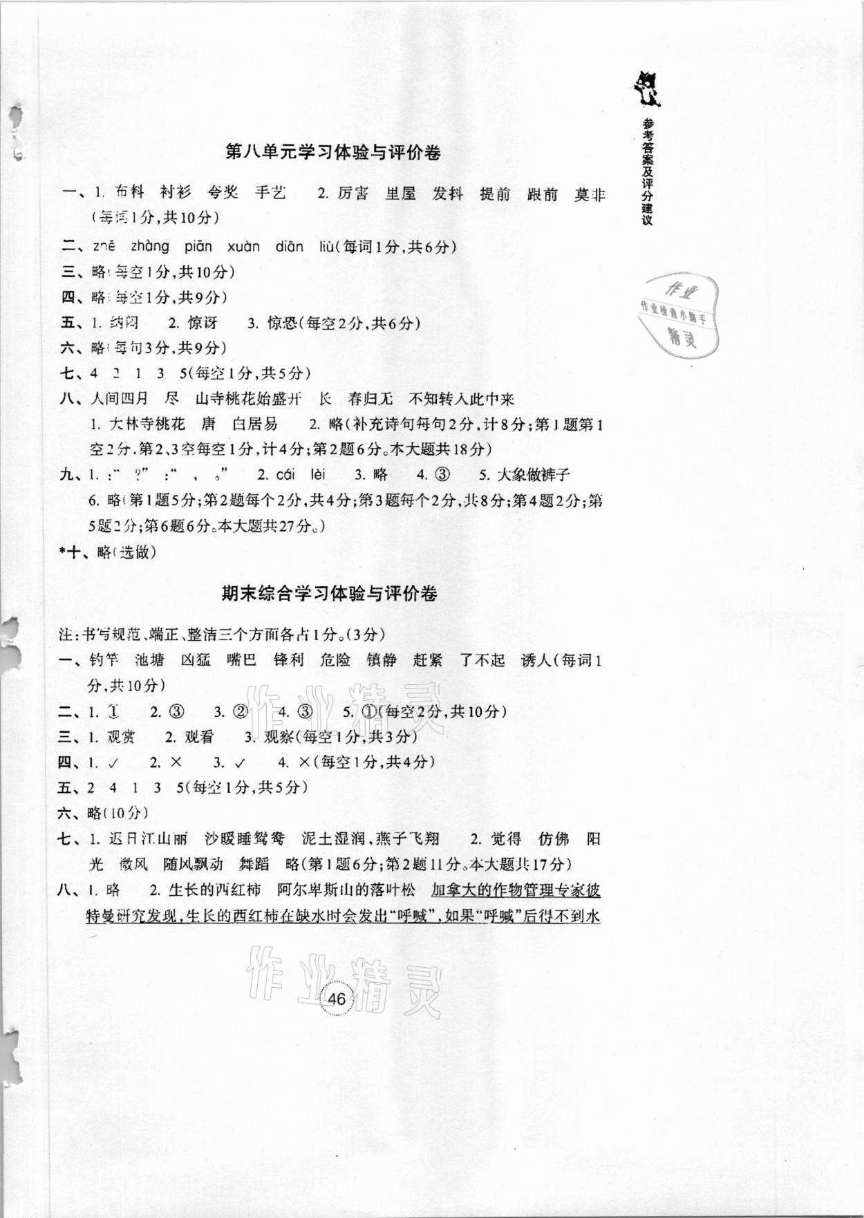 注:目前有些书本章节名称可能整理的还不是很完善,但都是按照顺序排列的,请同学们按照顺序仔细查找。练习册 2021年单元学习体验与评价三年级语文下册人教版 答案主要是用来给同学们做完题方便对答案用的,请勿直接抄袭。