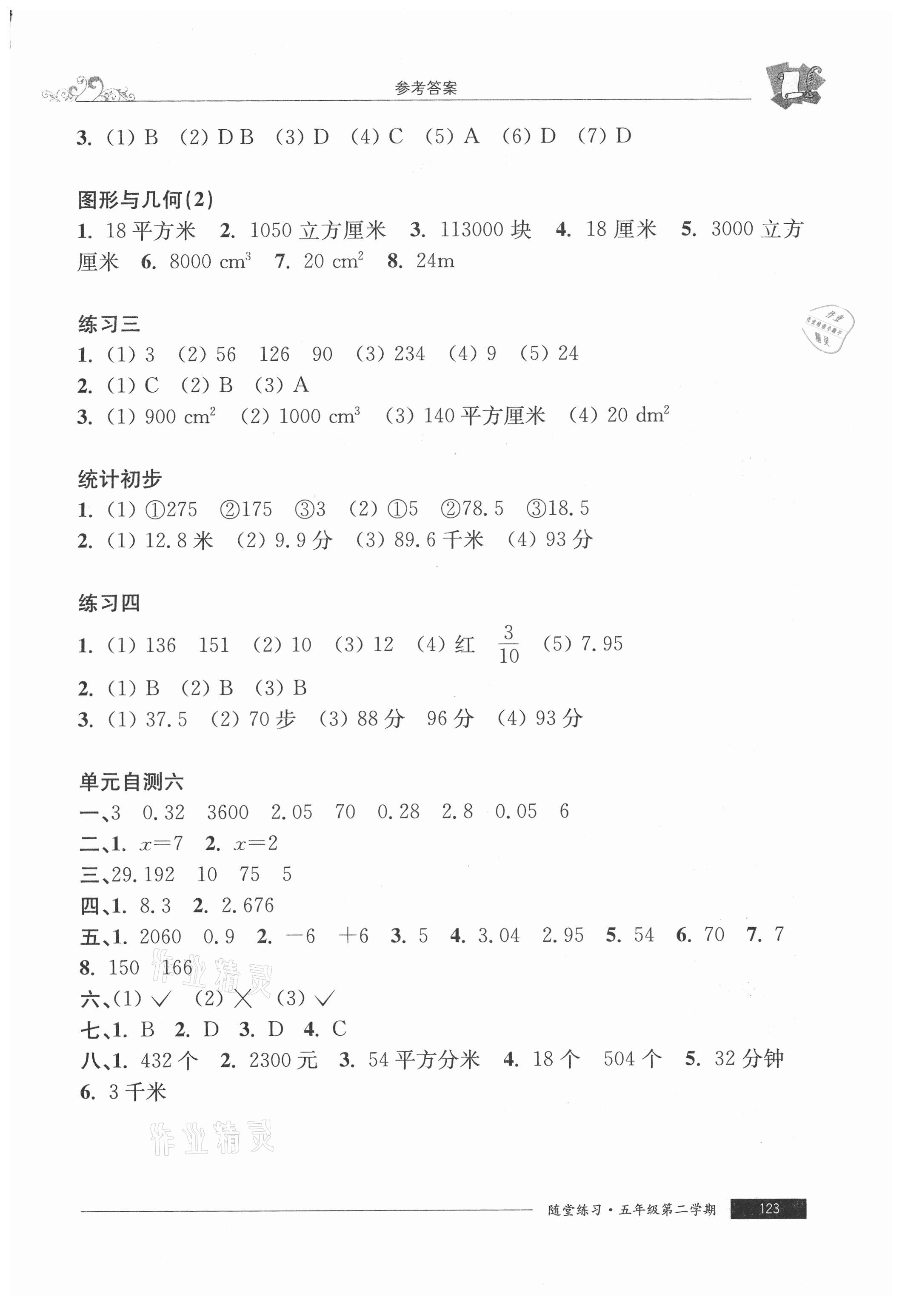 注:目前有些书本章节名称可能整理的还不是很完善,但都是按照顺序排列的,请同学们按照顺序仔细查找。练习册 2021年随堂练习与单元测试五年级数学第二学期沪教版54制 答案主要是用来给同学们做完题方便对答案用的,请勿直接抄袭。