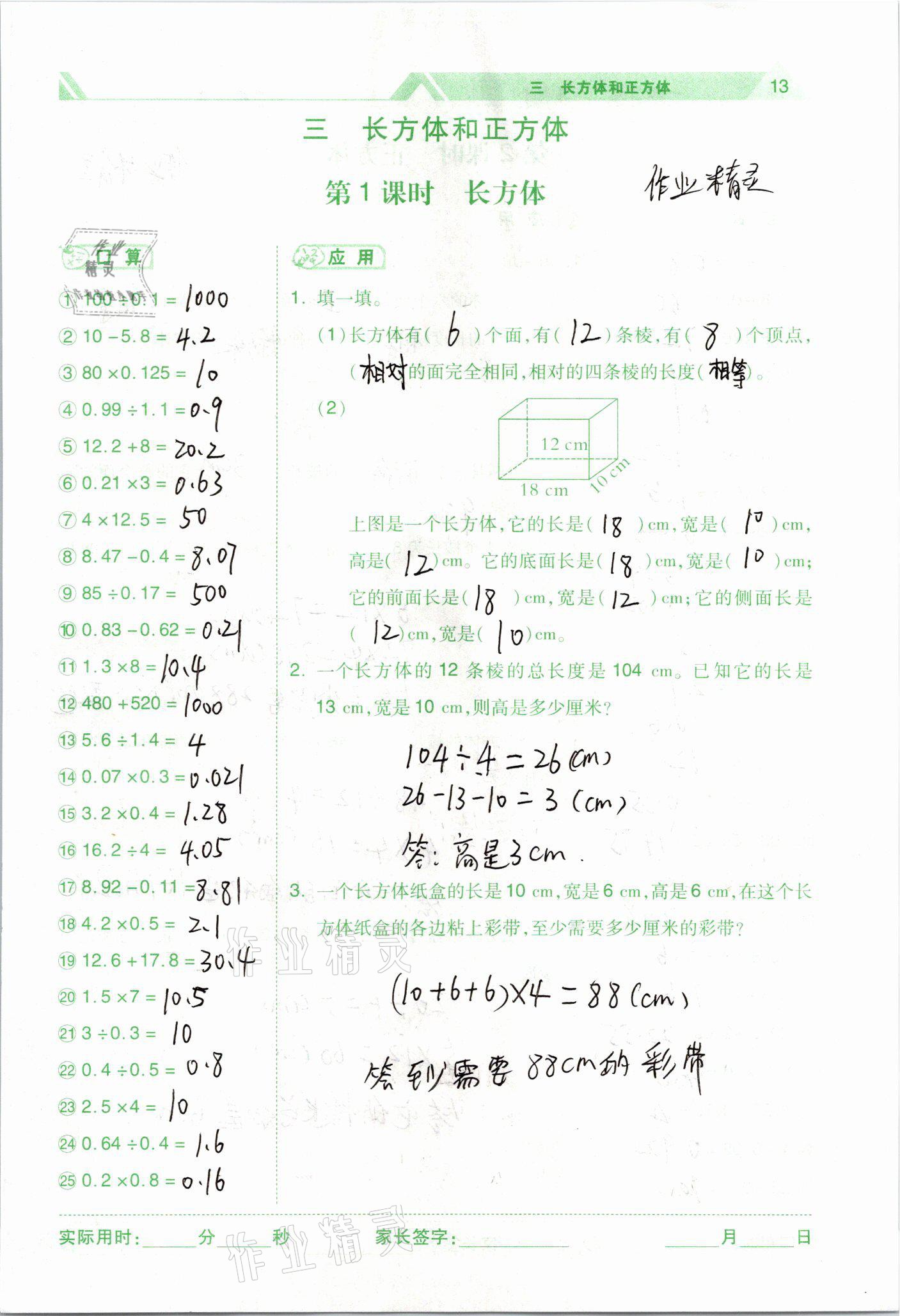 注:目前有些书本章节名称可能整理的还不是很完善,但都是按照顺序排列的,请同学们按照顺序仔细查找。练习册 2021年一路领先口算题卡五年级数学下册 答案主要是用来给同学们做完题方便对答案用的,请勿直接抄袭。