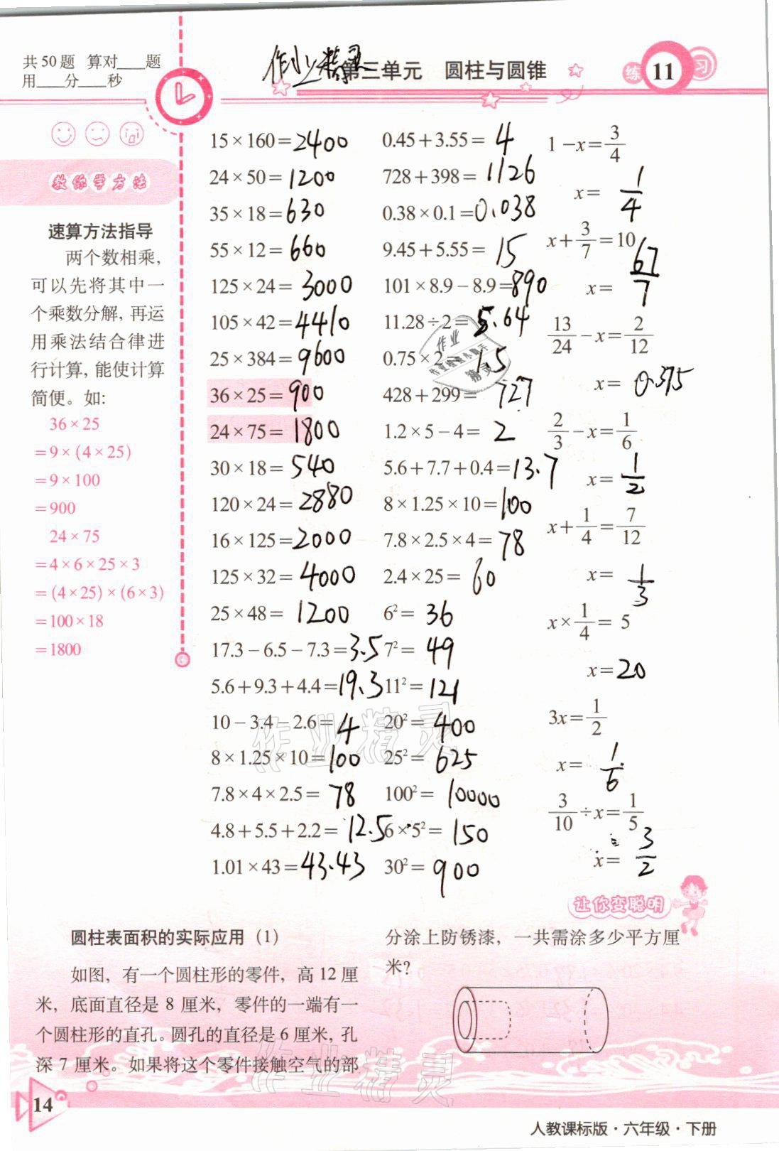 注:目前有些书本章节名称可能整理的还不是很完善,但都是按照顺序排列的,请同学们按照顺序仔细查找。练习册 2021年整合集训口算速算天天练六年级数学下册人教版 答案主要是用来给同学们做完题方便对答案用的,请勿直接抄袭。
