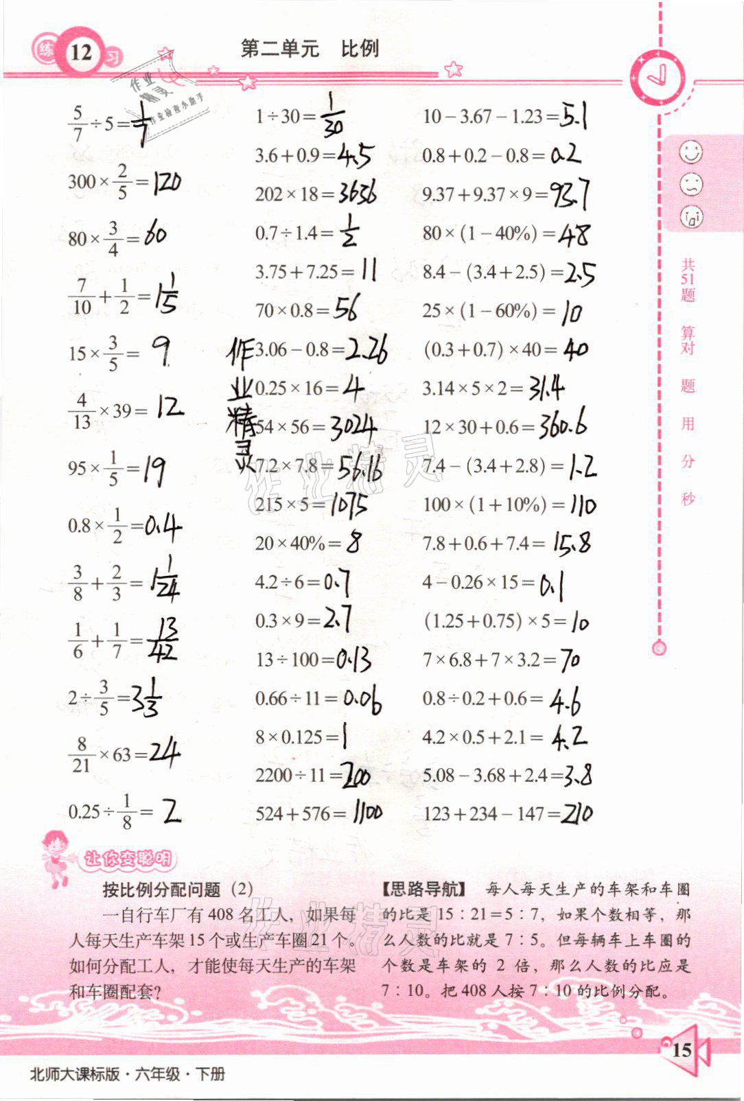 注:目前有些书本章节名称可能整理的还不是很完善,但都是按照顺序排列的,请同学们按照顺序仔细查找。练习册 2021年整合集训口算速算天天练六年级数学下册北师大版 答案主要是用来给同学们做完题方便对答案用的,请勿直接抄袭。