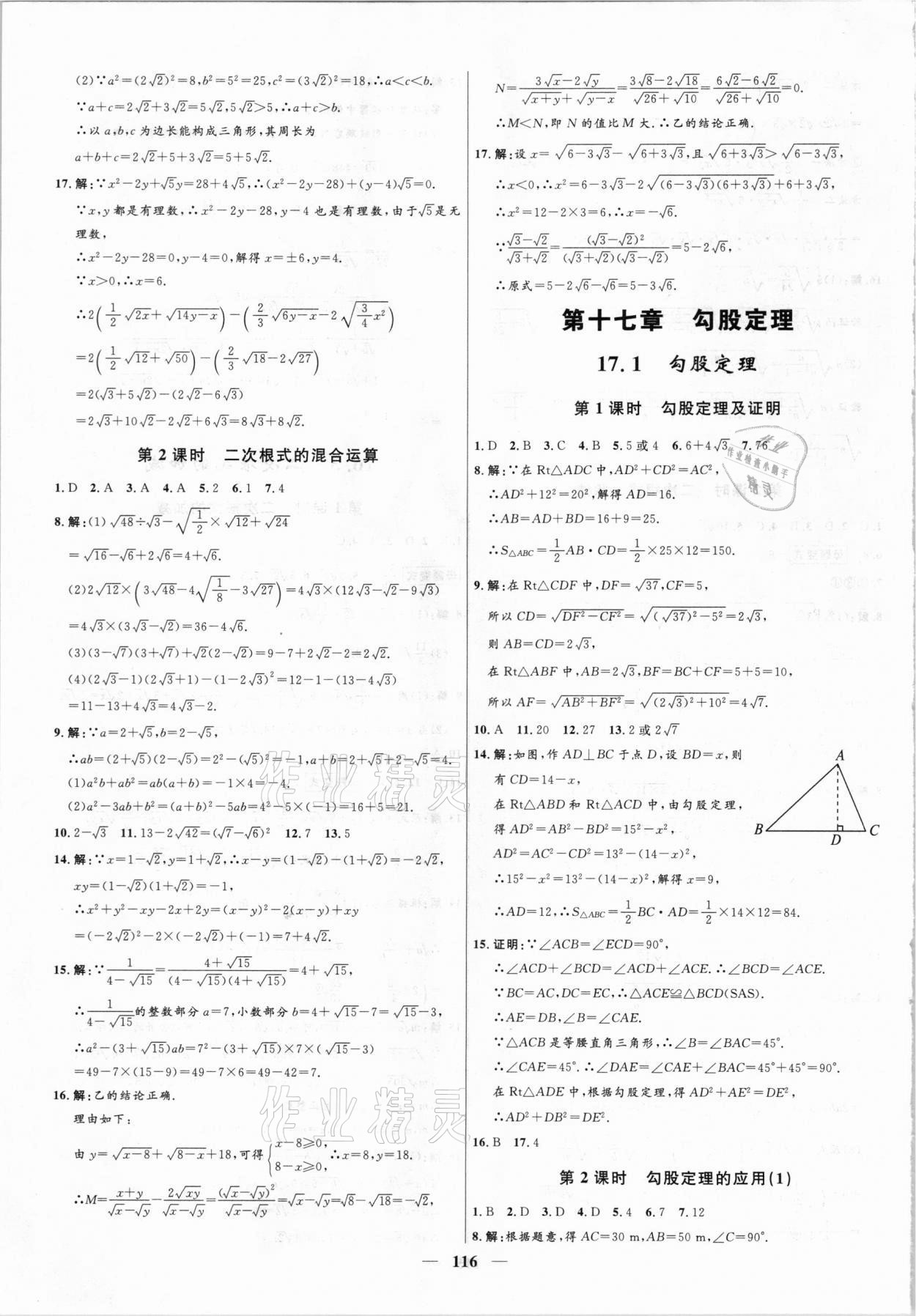注:目前有些书本章节名称可能整理的还不是很完善,但都是按照顺序排列的,请同学们按照顺序仔细查找。练习册 2021年夺冠百分百初中精讲精练八年级数学下册人教版 答案主要是用来给同学们做完题方便对答案用的,请勿直接抄袭。