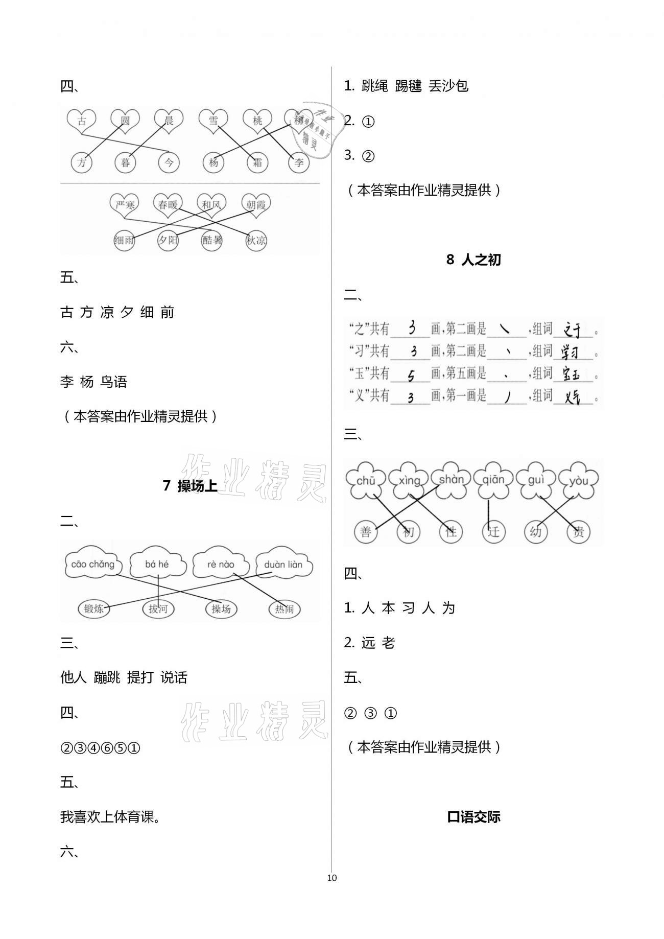 注:目前有些书本章节名称可能整理的还不是很完善,但都是按照顺序排列的,请同学们按照顺序仔细查找。练习册 2021年新编课时精练一年级语文下册人教版 答案主要是用来给同学们做完题方便对答案用的,请勿直接抄袭。