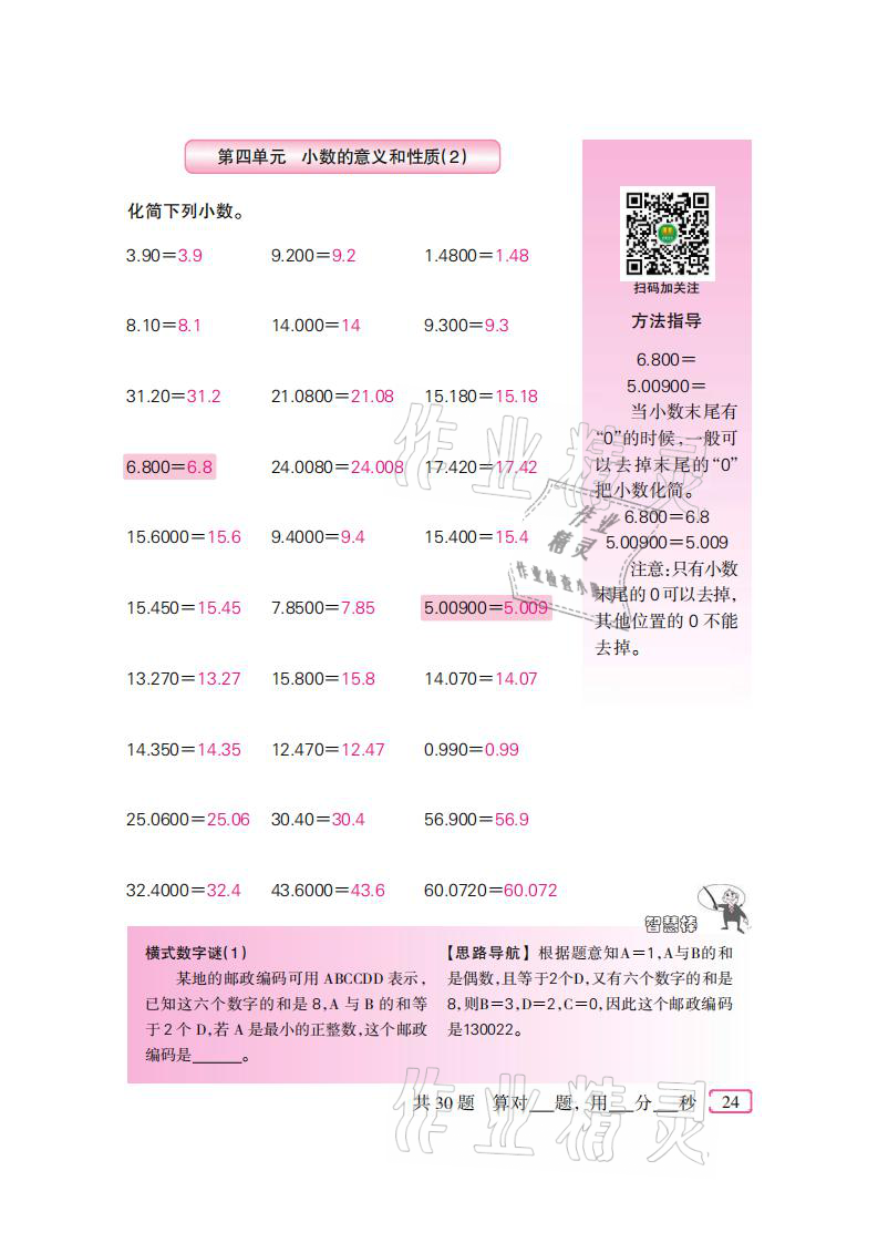 注:目前有些书本章节名称可能整理的还不是很完善,但都是按照顺序排列的,请同学们按照顺序仔细查找。练习册 2021年口算速算天天练四年级数学下册人教版新疆青少年出版社 答案主要是用来给同学们做完题方便对答案用的,请勿直接抄袭。