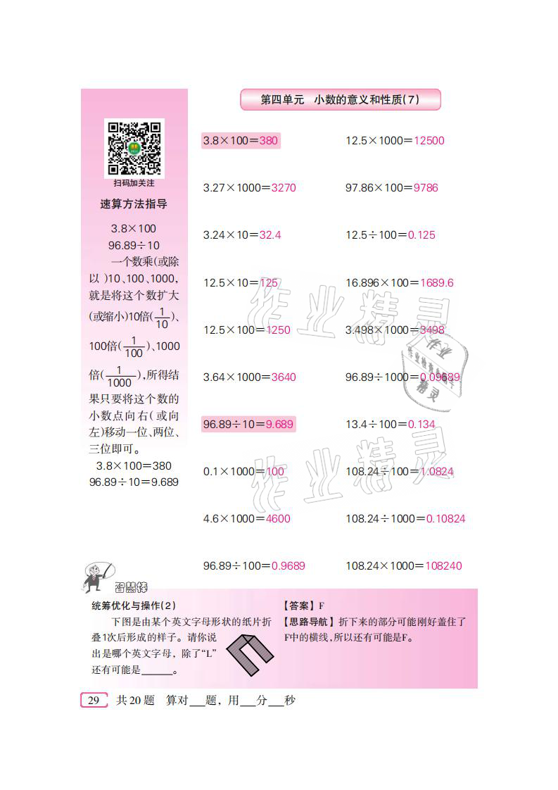 注:目前有些书本章节名称可能整理的还不是很完善,但都是按照顺序排列的,请同学们按照顺序仔细查找。练习册 2021年口算速算天天练四年级数学下册人教版新疆青少年出版社 答案主要是用来给同学们做完题方便对答案用的,请勿直接抄袭。