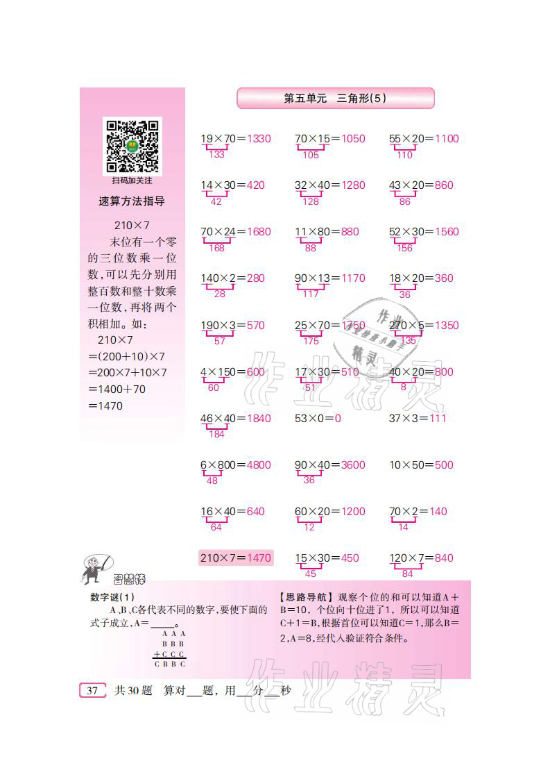 注:目前有些书本章节名称可能整理的还不是很完善,但都是按照顺序排列的,请同学们按照顺序仔细查找。练习册 2021年口算速算天天练四年级数学下册人教版新疆青少年出版社 答案主要是用来给同学们做完题方便对答案用的,请勿直接抄袭。