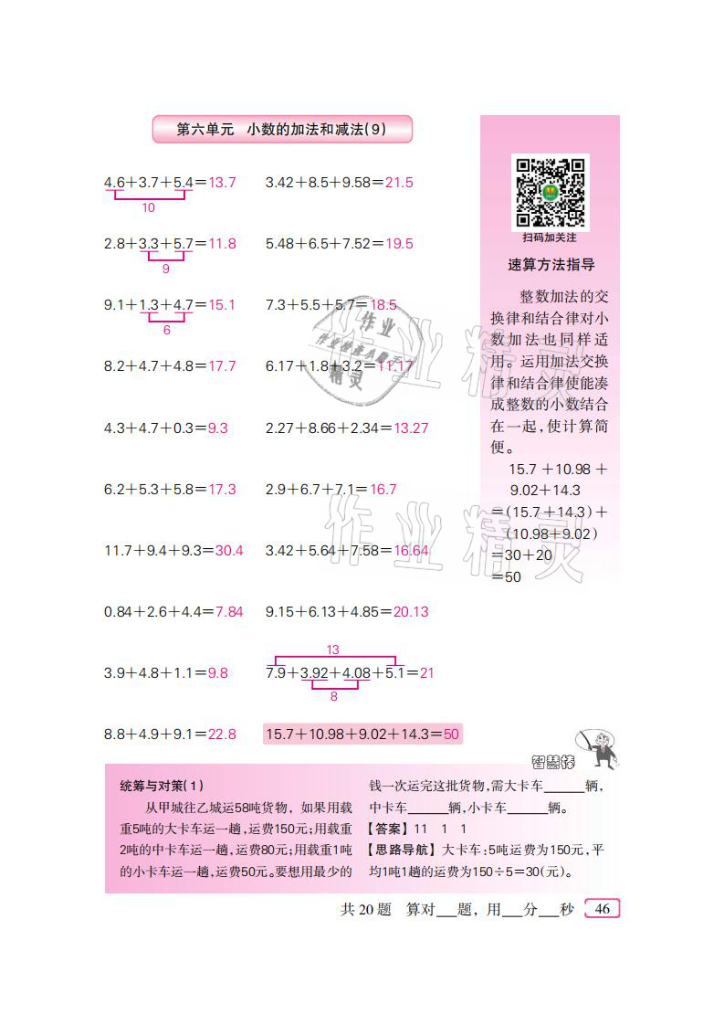 注:目前有些书本章节名称可能整理的还不是很完善,但都是按照顺序排列的,请同学们按照顺序仔细查找。练习册 2021年口算速算天天练四年级数学下册人教版新疆青少年出版社 答案主要是用来给同学们做完题方便对答案用的,请勿直接抄袭。