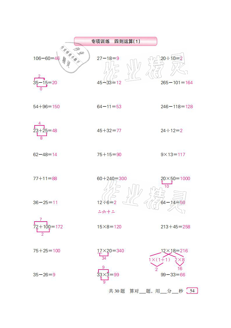 注:目前有些书本章节名称可能整理的还不是很完善,但都是按照顺序排列的,请同学们按照顺序仔细查找。练习册 2021年口算速算天天练四年级数学下册人教版新疆青少年出版社 答案主要是用来给同学们做完题方便对答案用的,请勿直接抄袭。