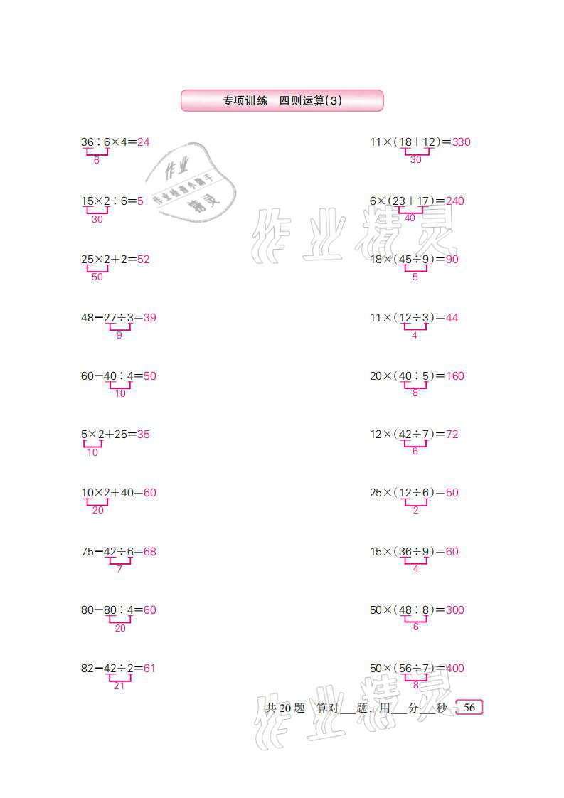 注:目前有些书本章节名称可能整理的还不是很完善,但都是按照顺序排列的,请同学们按照顺序仔细查找。练习册 2021年口算速算天天练四年级数学下册人教版新疆青少年出版社 答案主要是用来给同学们做完题方便对答案用的,请勿直接抄袭。