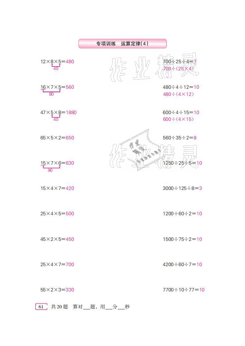 注:目前有些书本章节名称可能整理的还不是很完善,但都是按照顺序排列的,请同学们按照顺序仔细查找。练习册 2021年口算速算天天练四年级数学下册人教版新疆青少年出版社 答案主要是用来给同学们做完题方便对答案用的,请勿直接抄袭。