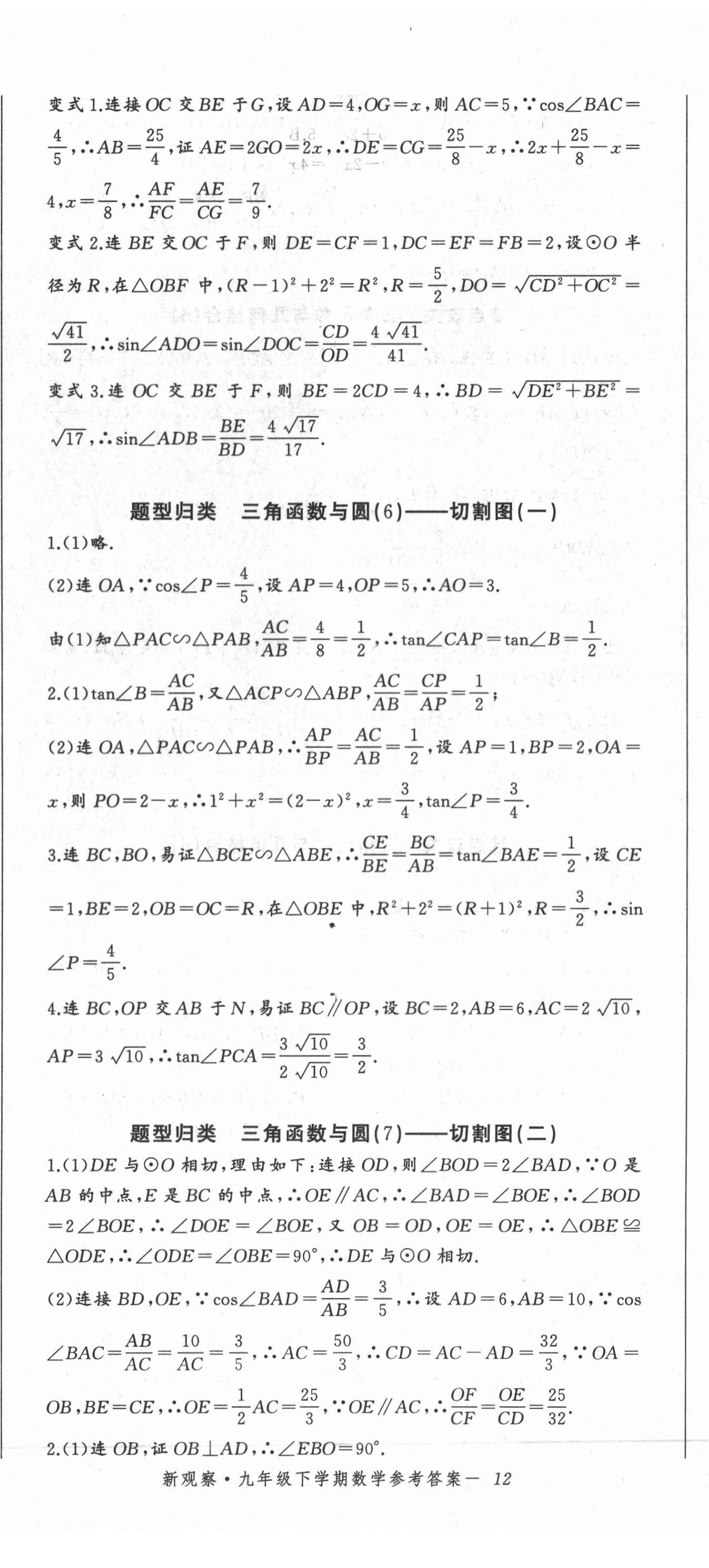 2021年思维新观察九年级数学下册人教版广东专版