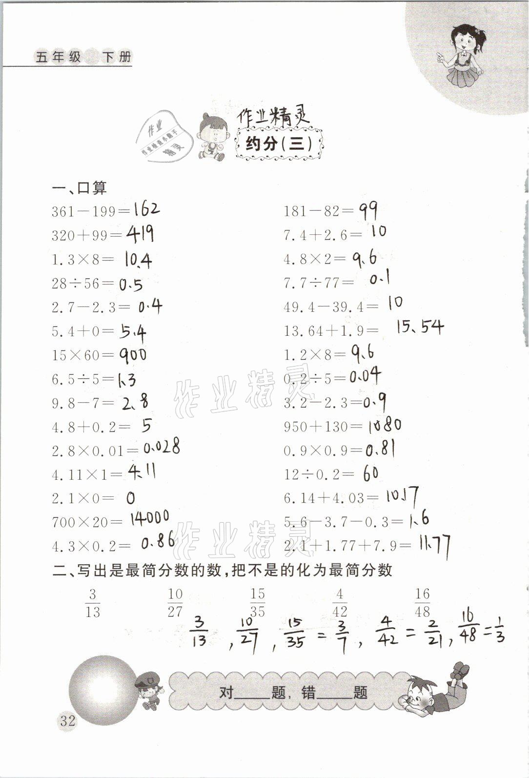 注:目前有些书本章节名称可能整理的还不是很完善,但都是按照顺序排列的,请同学们按照顺序仔细查找。练习册 2021年小学数学口算心算天天练五年级下册人教版 答案主要是用来给同学们做完题方便对答案用的,请勿直接抄袭。