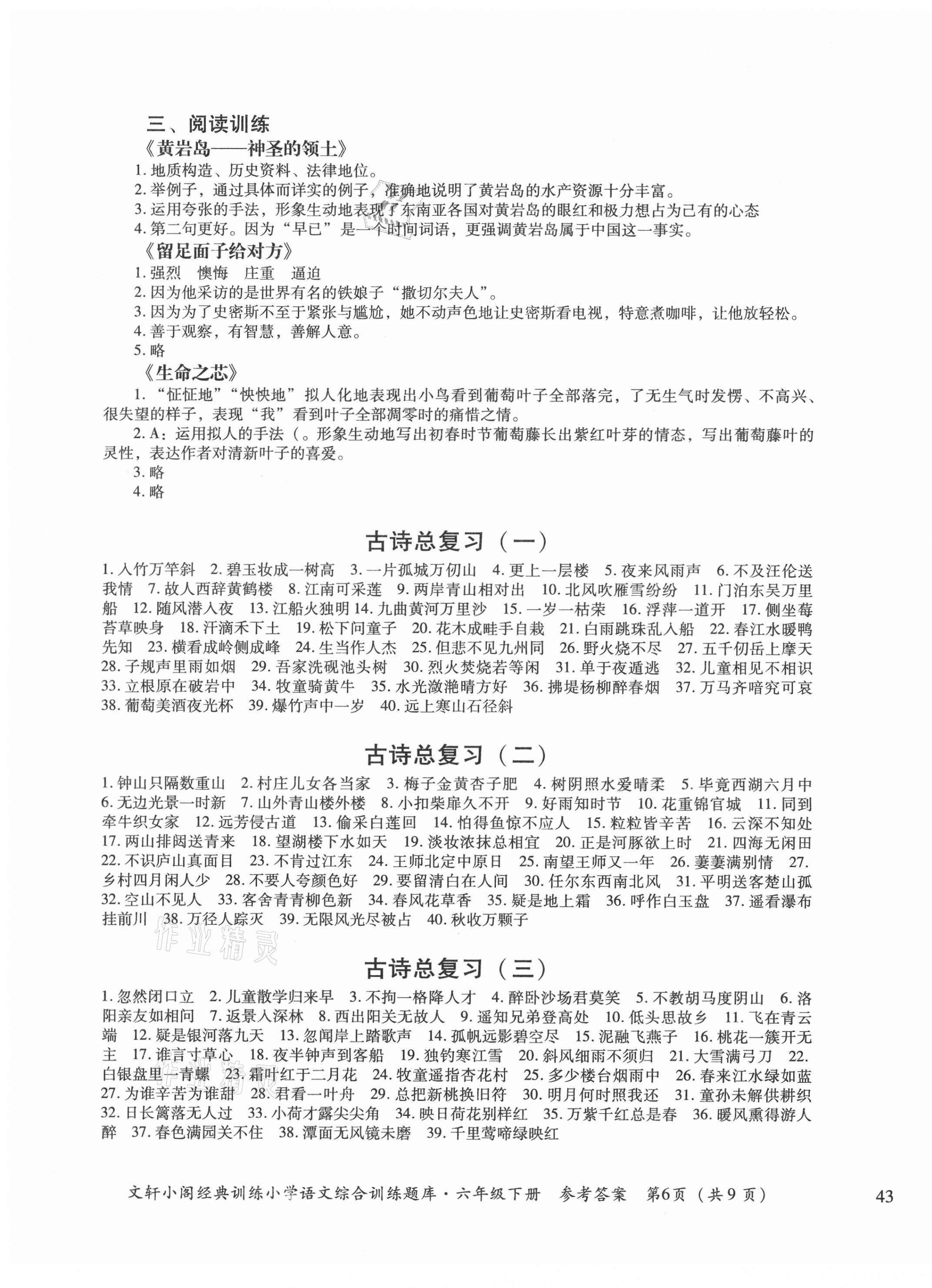 注:目前有些书本章节名称可能整理的还不是很完善,但都是按照顺序排列的,请同学们按照顺序仔细查找。练习册 2021年文轩小阁经典训练六年级下册人教版 答案主要是用来给同学们做完题方便对答案用的,请勿直接抄袭。