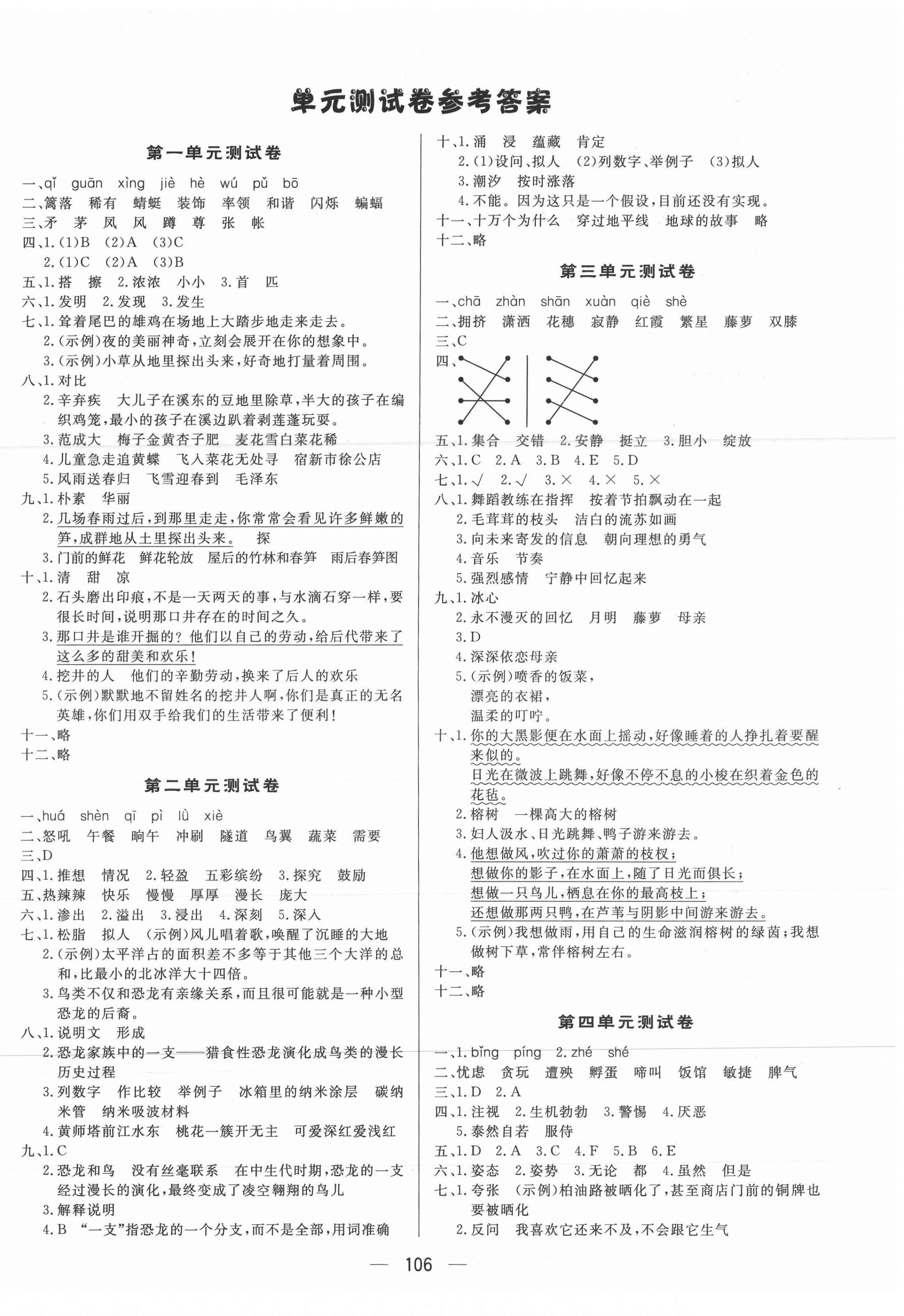 注:目前有些书本章节名称可能整理的还不是很完善,但都是按照顺序排列的,请同学们按照顺序仔细查找。练习册 2021年简易通四年级语文下册人教版 答案主要是用来给同学们做完题方便对答案用的,请勿直接抄袭。