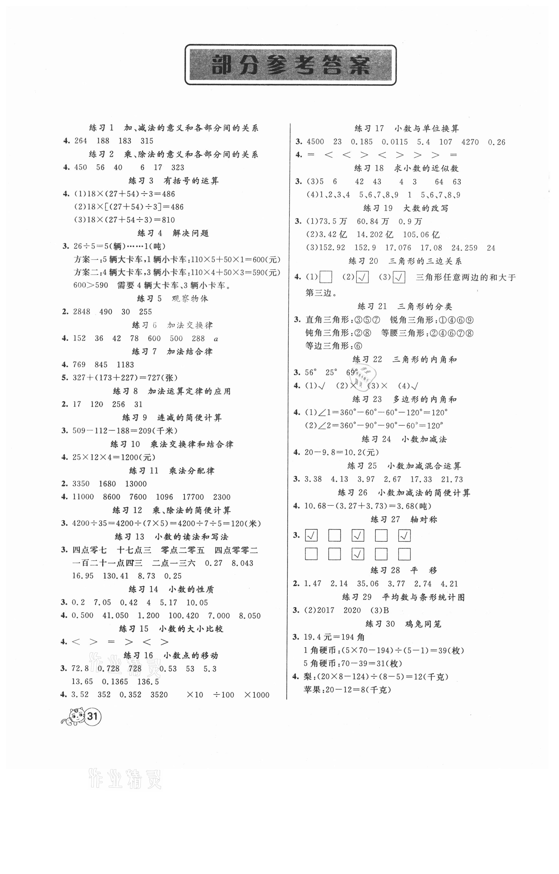 注:目前有些书本章节名称可能整理的还不是很完善,但都是按照顺序排列的,请同学们按照顺序仔细查找。练习册 2021年智慧树同步讲练测四年级数学下册人教版福建专版 答案主要是用来给同学们做完题方便对答案用的,请勿直接抄袭。