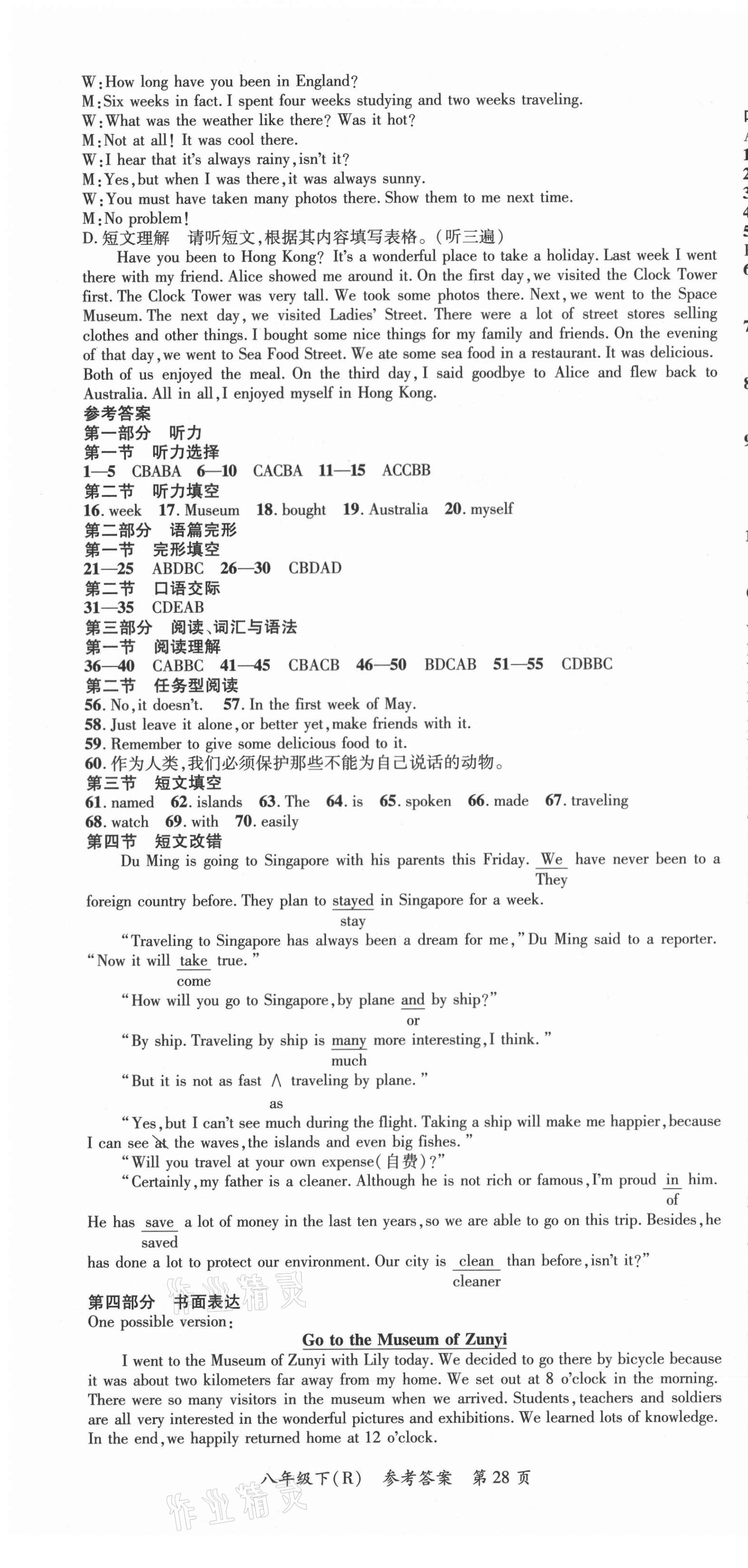 注:目前有些书本章节名称可能整理的还不是很完善,但都是按照顺序排列的,请同学们按照顺序仔细查找。练习册 2021年名师三导学练考八年级英语下册人教版 答案主要是用来给同学们做完题方便对答案用的,请勿直接抄袭。