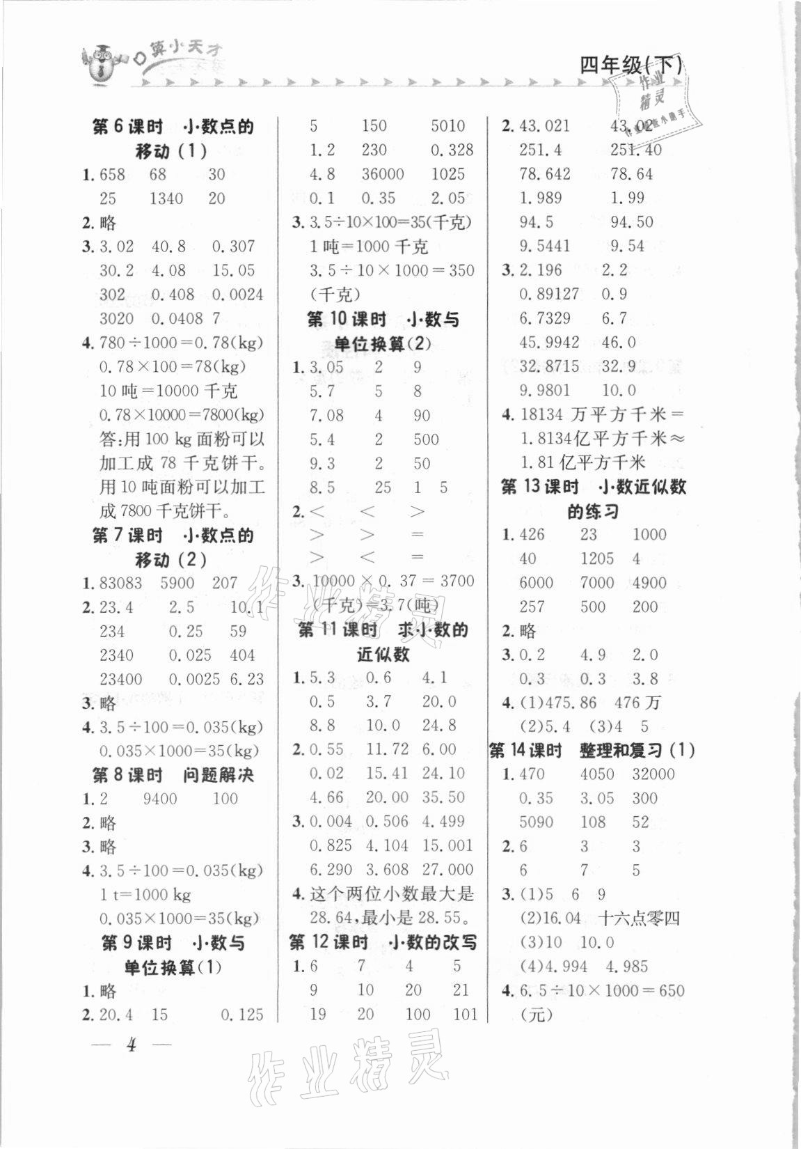 2021年口算小天才四年级数学下册人教版