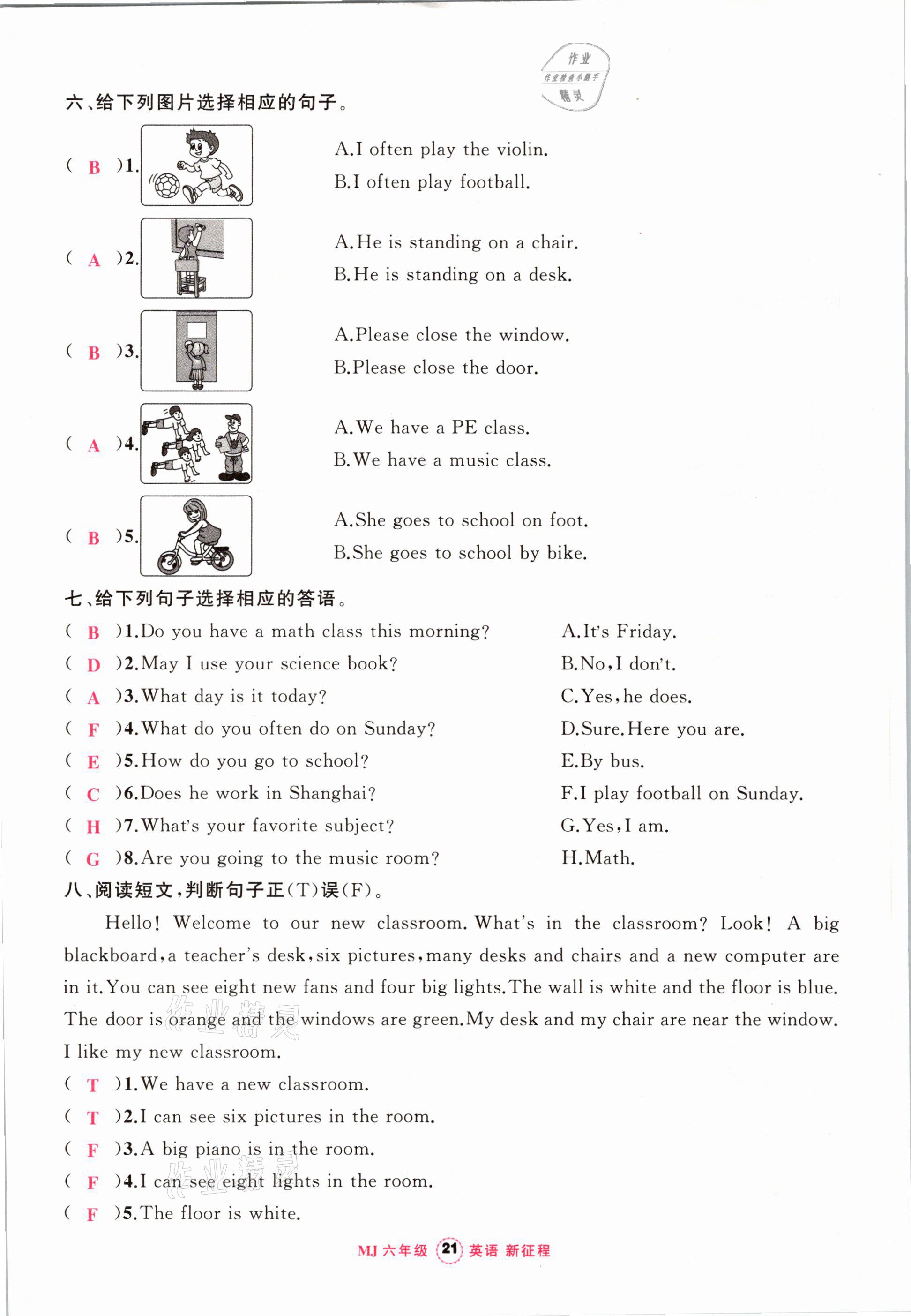 注:目前有些书本章节名称可能整理的还不是很完善,但都是按照顺序排列的,请同学们按照顺序仔细查找。练习册 2021年新征程六年级英语下册闽教版 答案主要是用来给同学们做完题方便对答案用的,请勿直接抄袭。