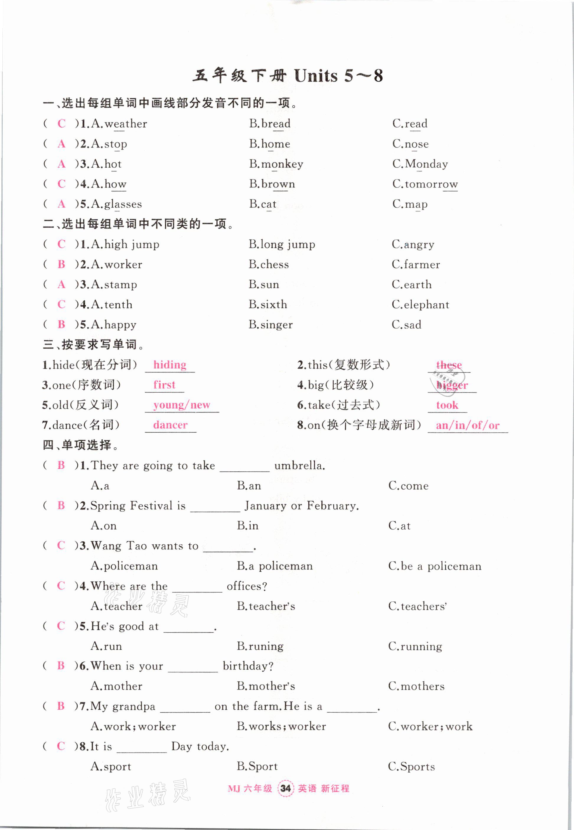 注:目前有些书本章节名称可能整理的还不是很完善,但都是按照顺序排列的,请同学们按照顺序仔细查找。练习册 2021年新征程六年级英语下册闽教版 答案主要是用来给同学们做完题方便对答案用的,请勿直接抄袭。