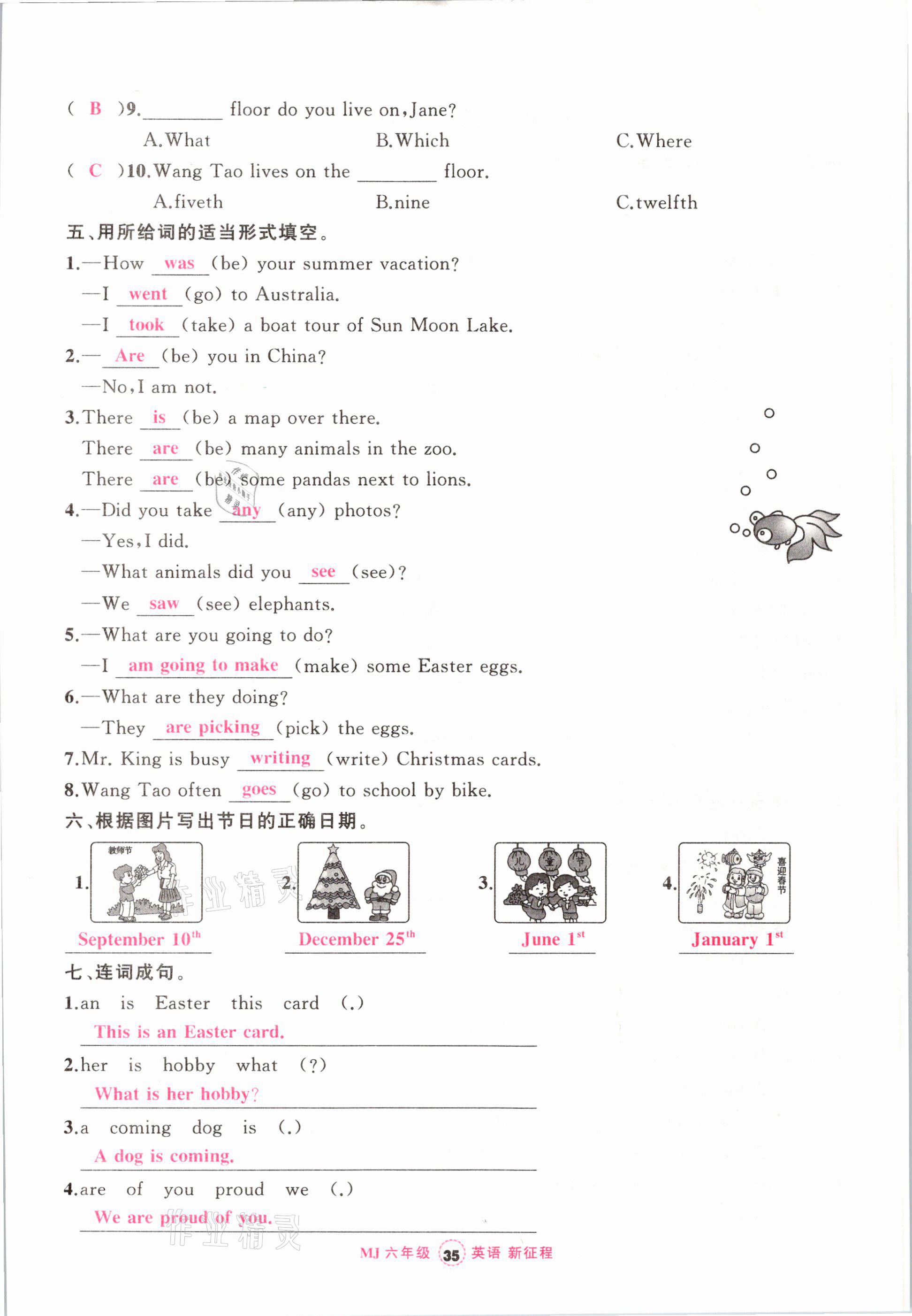 注:目前有些书本章节名称可能整理的还不是很完善,但都是按照顺序排列的,请同学们按照顺序仔细查找。练习册 2021年新征程六年级英语下册闽教版 答案主要是用来给同学们做完题方便对答案用的,请勿直接抄袭。