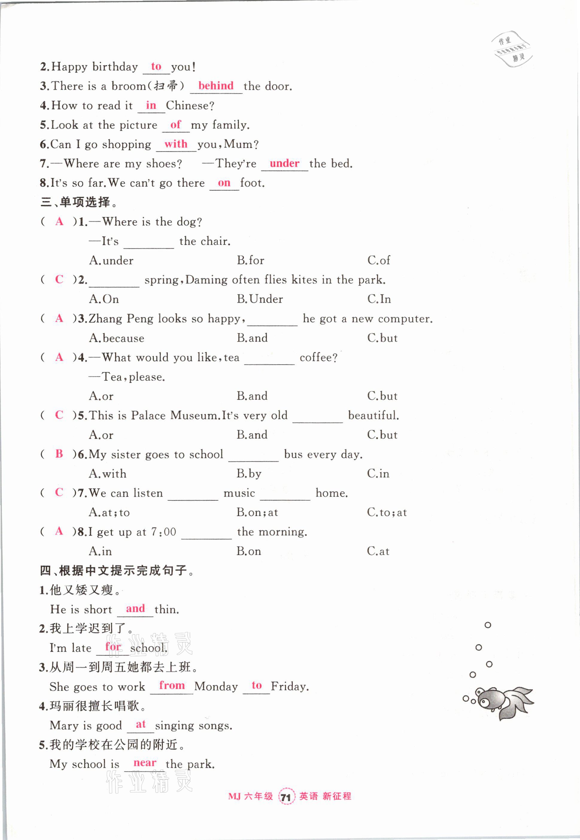 注:目前有些书本章节名称可能整理的还不是很完善,但都是按照顺序排列的,请同学们按照顺序仔细查找。练习册 2021年新征程六年级英语下册闽教版 答案主要是用来给同学们做完题方便对答案用的,请勿直接抄袭。