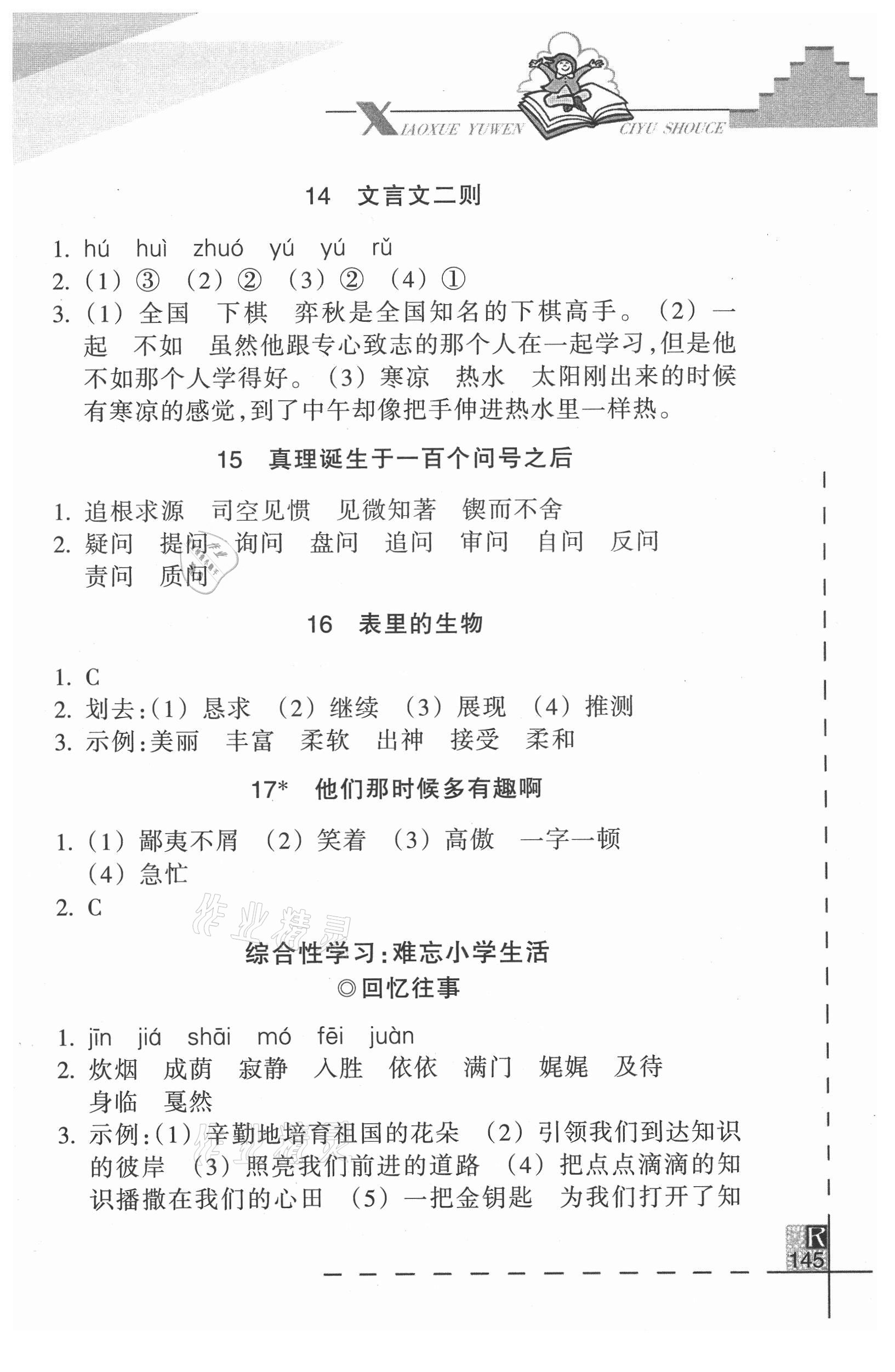 注:目前有些书本章节名称可能整理的还不是很完善,但都是按照顺序排列的,请同学们按照顺序仔细查找。练习册 2021年小学语文词语手册六年级下册人教版浙江教育出版社 答案主要是用来给同学们做完题方便对答案用的,请勿直接抄袭。