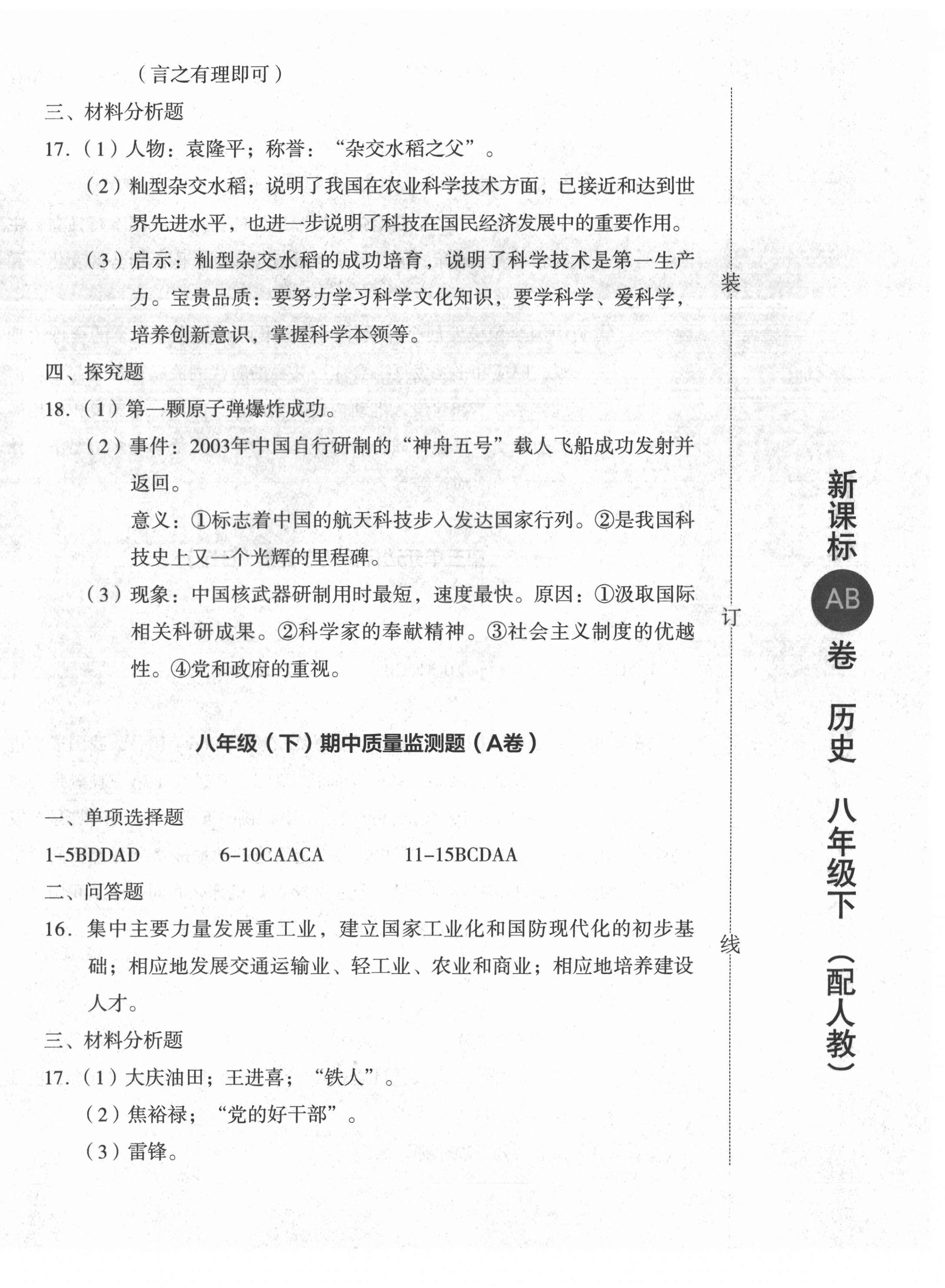 注:目前有些书本章节名称可能整理的还不是很完善,但都是按照顺序排列的,请同学们按照顺序仔细查找。练习册 2021年新课标AB卷单元测试八年级历史下册人教版 答案主要是用来给同学们做完题方便对答案用的,请勿直接抄袭。
