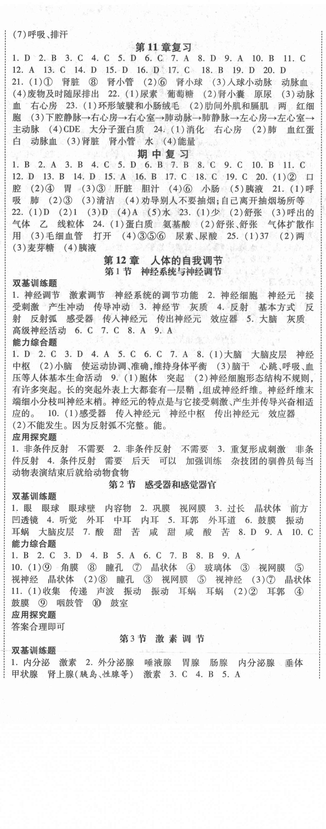 注:目前有些书本章节名称可能整理的还不是很完善,但都是按照顺序排列的,请同学们按照顺序仔细查找。练习册 2021年课时练加考评七年级生物下册北师大版 答案主要是用来给同学们做完题方便对答案用的,请勿直接抄袭。