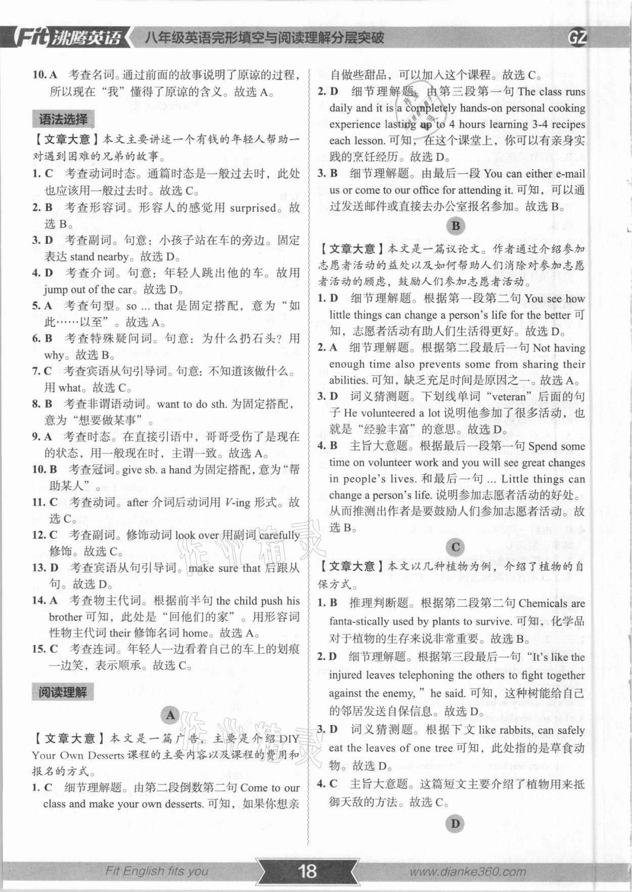 注:目前有些书本章节名称可能整理的还不是很完善,但都是按照顺序排列的,请同学们按照顺序仔细查找。练习册 2021年沸腾英语八年级完形填空与阅读理解分层突破广州专版 答案主要是用来给同学们做完题方便对答案用的,请勿直接抄袭。