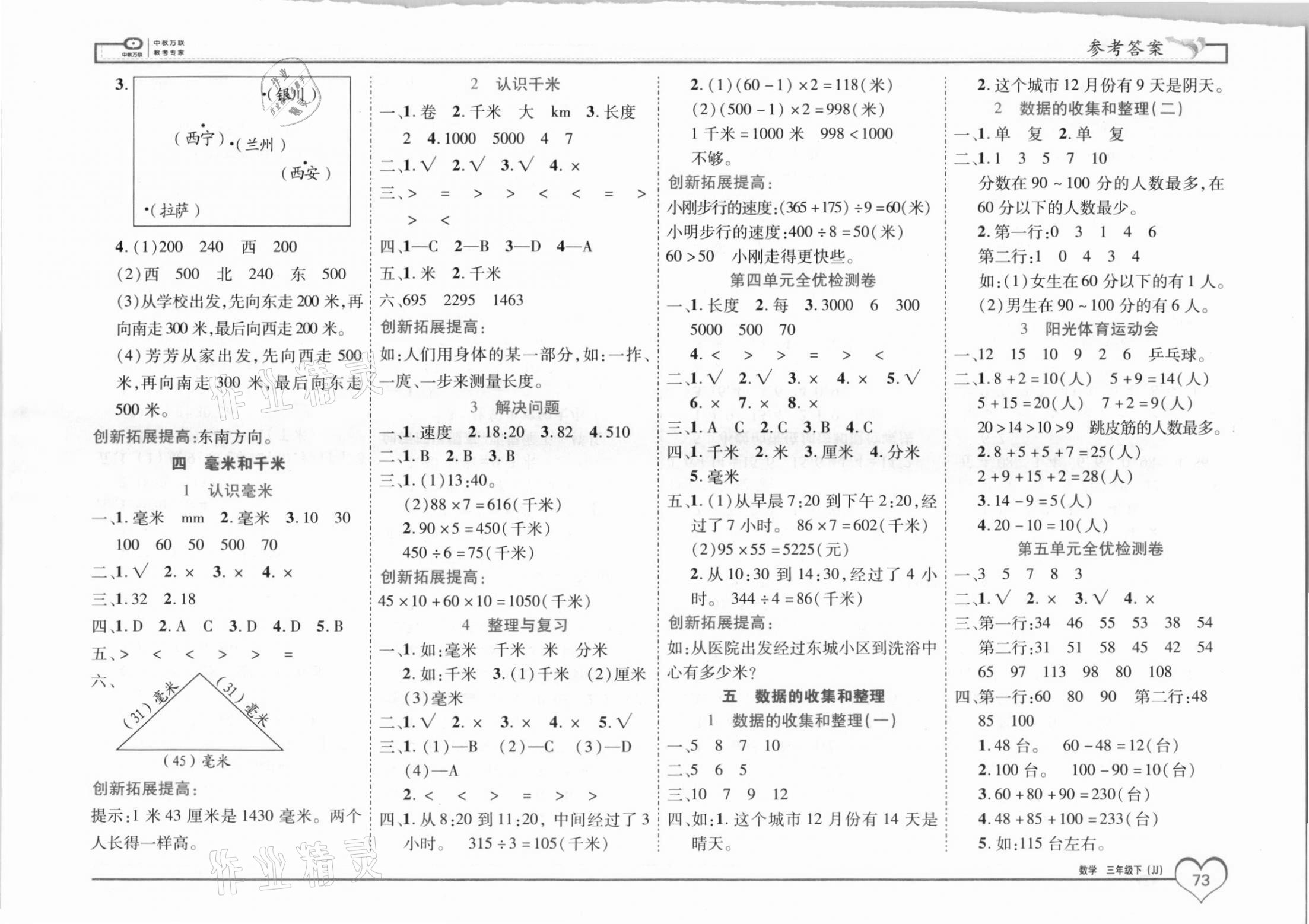 注:目前有些书本章节名称可能整理的还不是很完善,但都是按照顺序排列的,请同学们按照顺序仔细查找。练习册 2021年全优备考三年级数学下册冀教版河北专版 答案主要是用来给同学们做完题方便对答案用的,请勿直接抄袭。